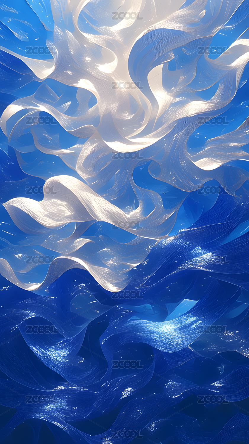 蓝色海浪抽象线条蓝白波浪背景