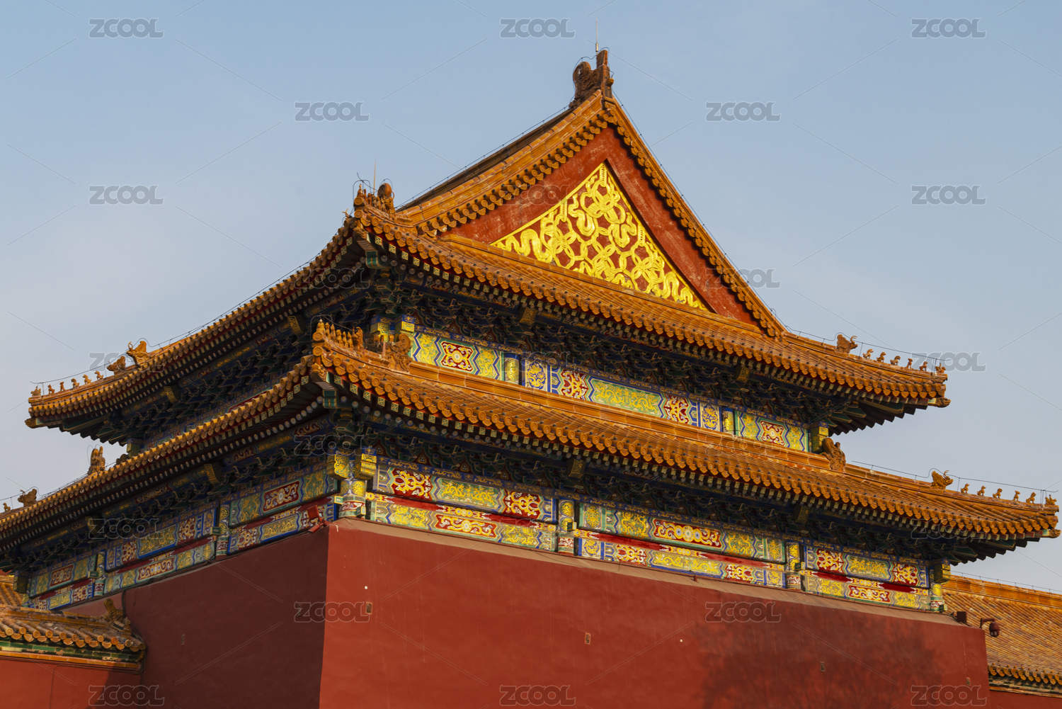 蓝天下的中国北京故宫博物馆的古宫殿建筑