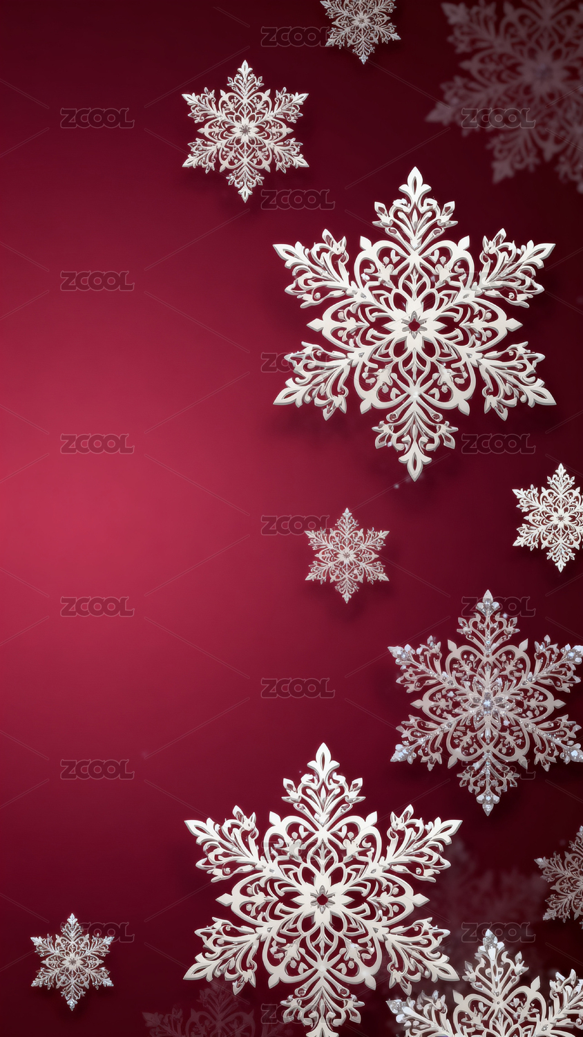 红色背景银色雪花装饰