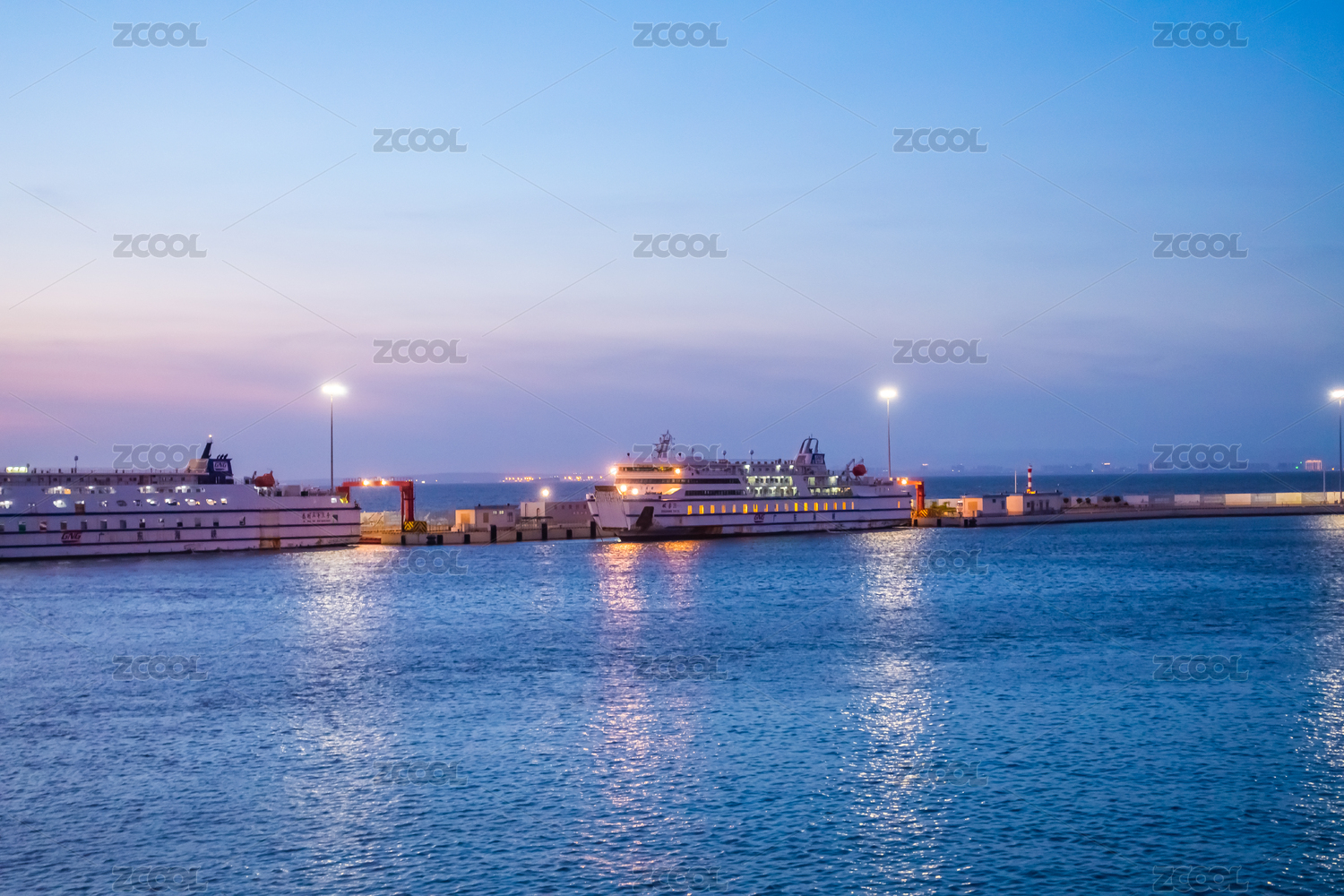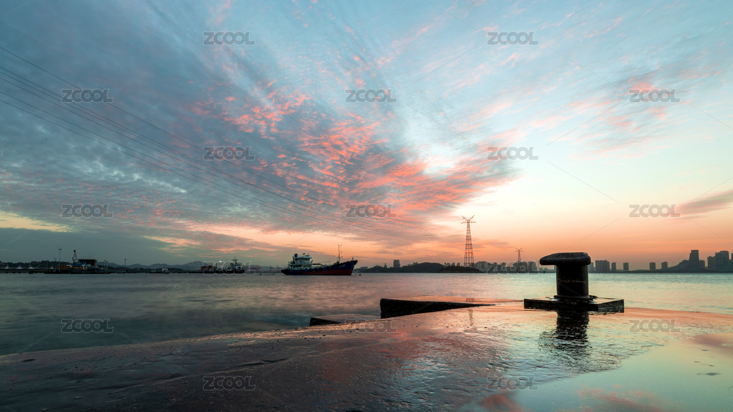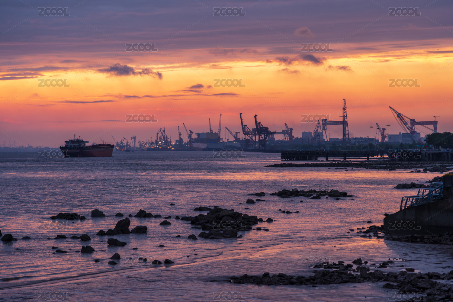 中国江苏无锡江阴长江造船厂码头江堤晚霞风光