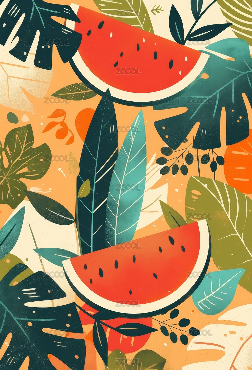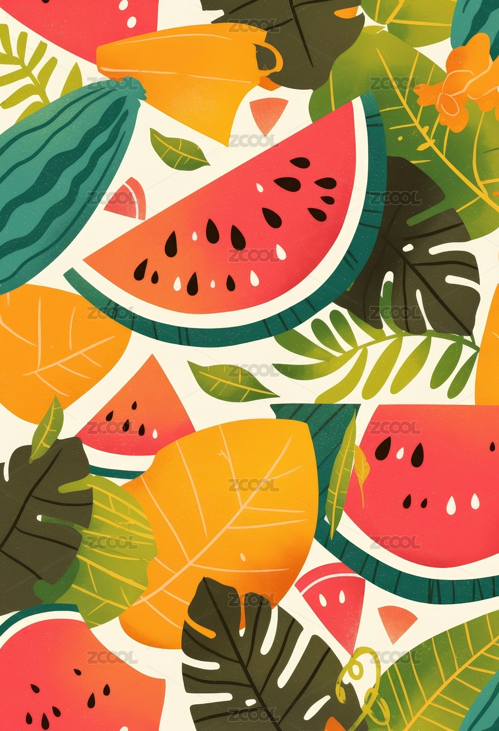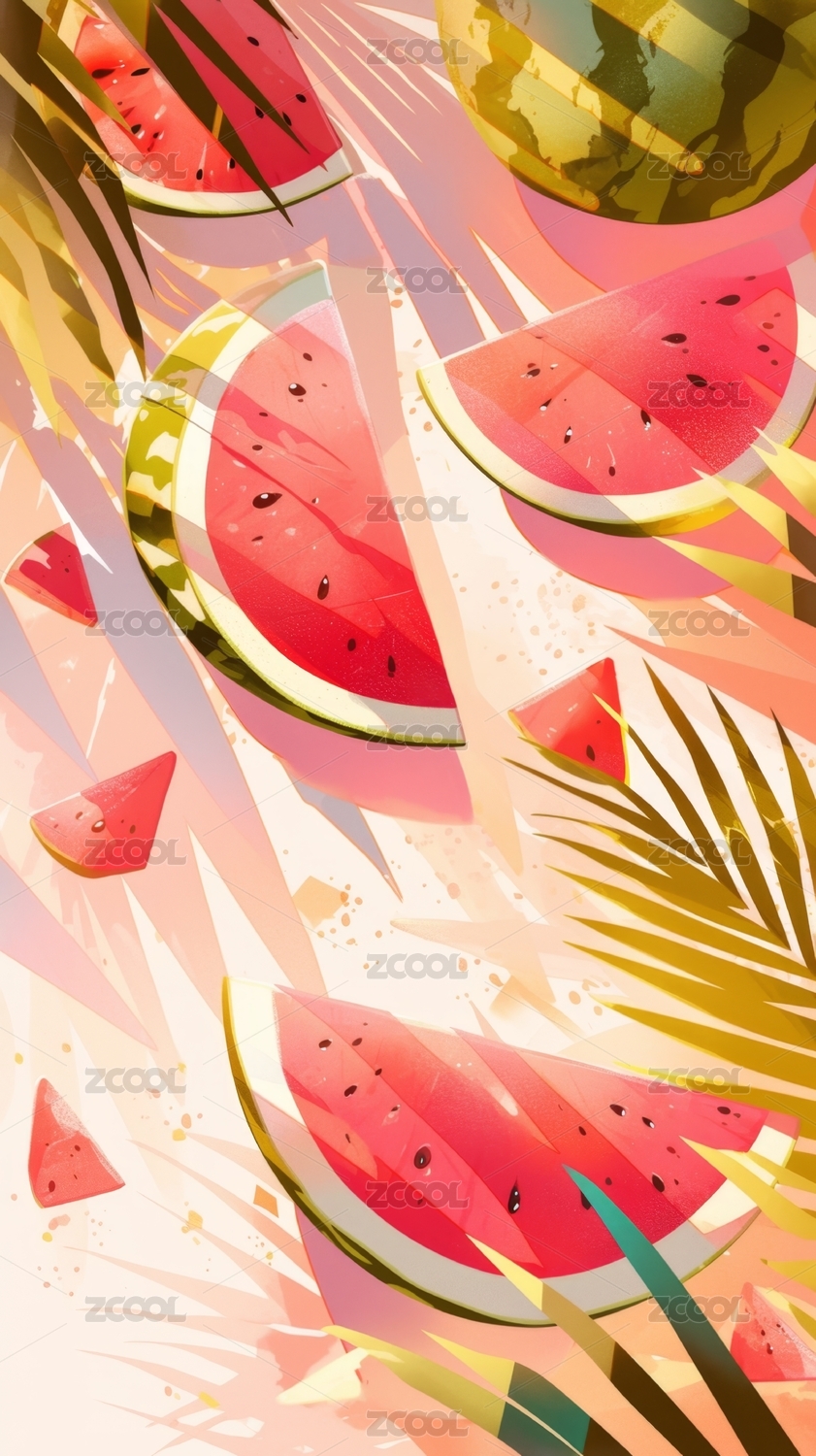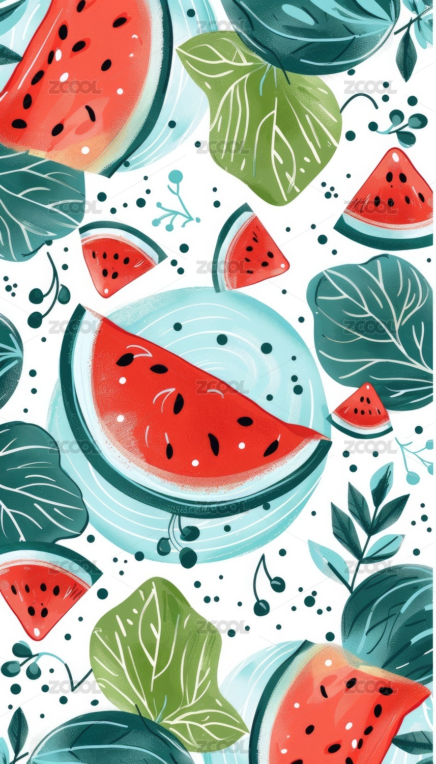 数码现代风格西瓜插画抽象图形海报背景