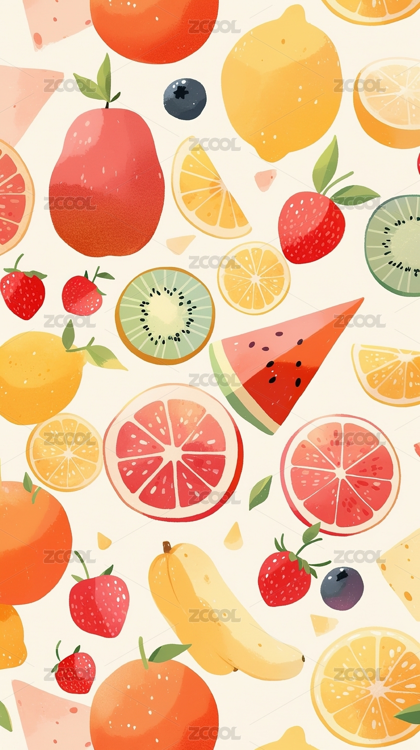 各种水果堆放出来的小清新插画
