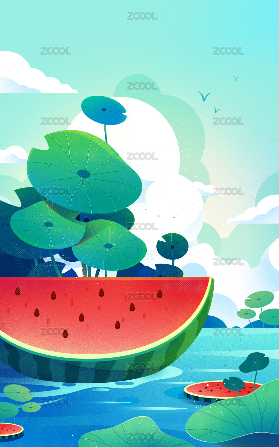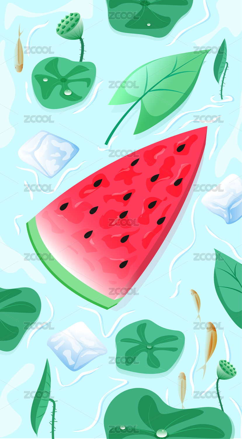 夏天,背景,插画,卡通,手绘,西瓜,清凉,夏日,夏季,荷花