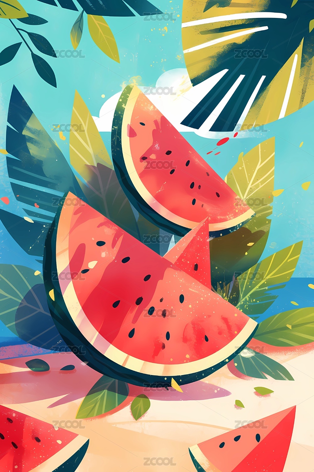 西瓜切片插画艺术