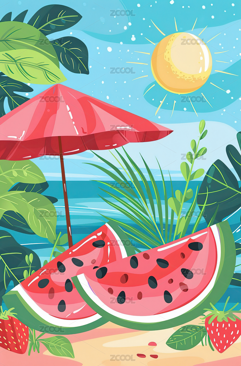 西瓜夏日插画海报