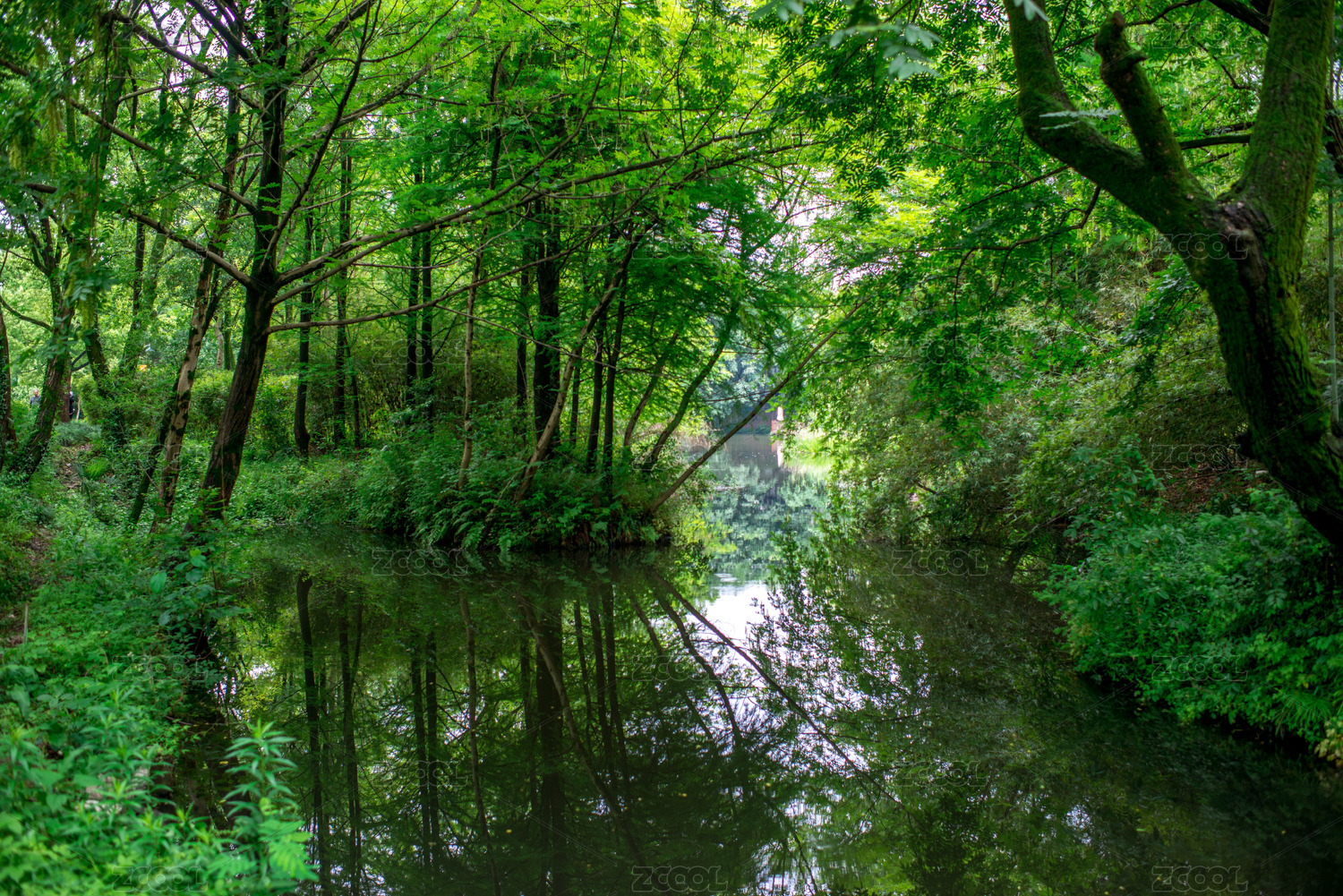 大自然绿色树林森林绿野仙踪小河溪流独木桥