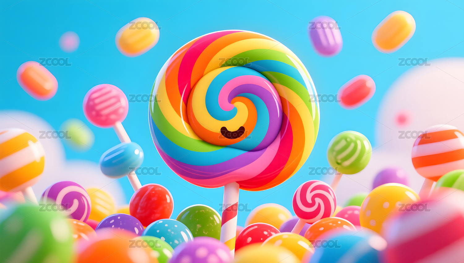 儿童节装饰庆祝假期节日3D糖果插画背景