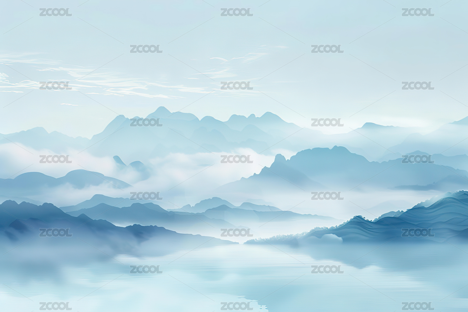 抽象,艺术,蓝色,背景,中国风,新中式,山峰,山,创意,长图