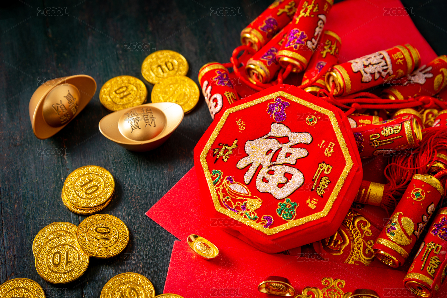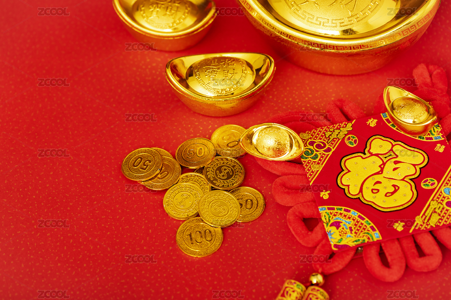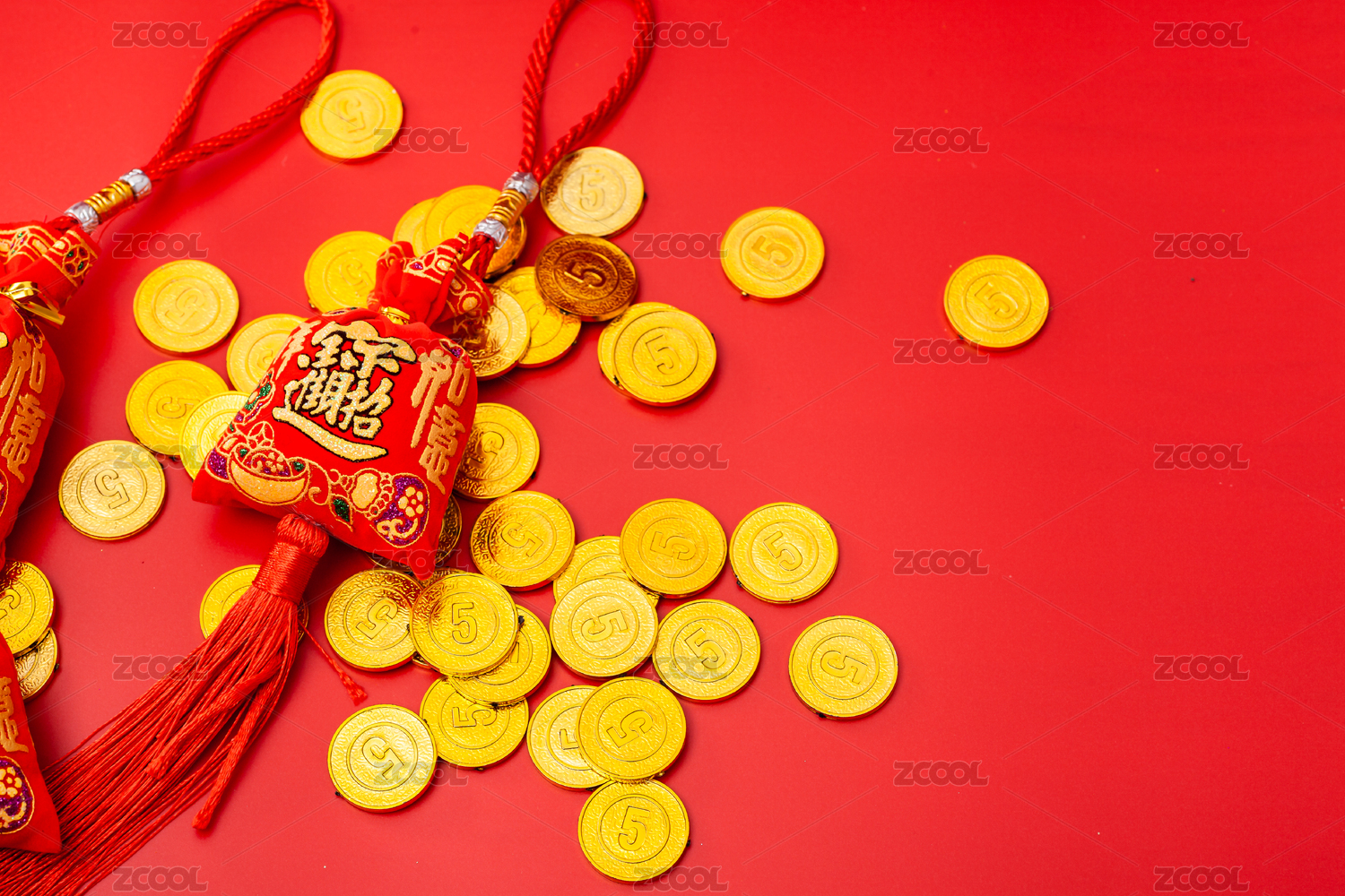 红色,春节,新年,福袋,福字,金币,新春,喜庆,节日,庆祝