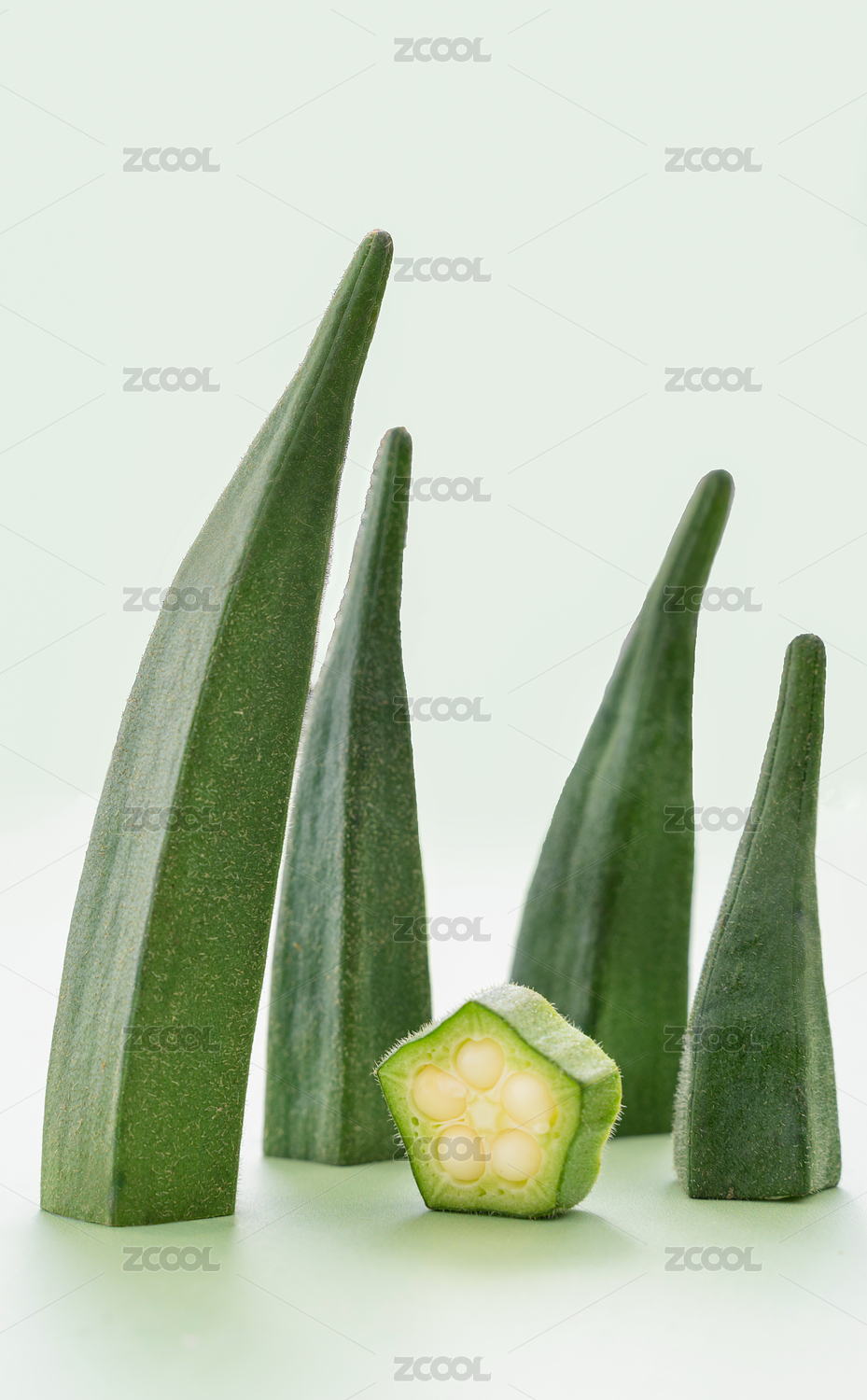 扇形摆在白色背景上的绿色蔬菜秋葵