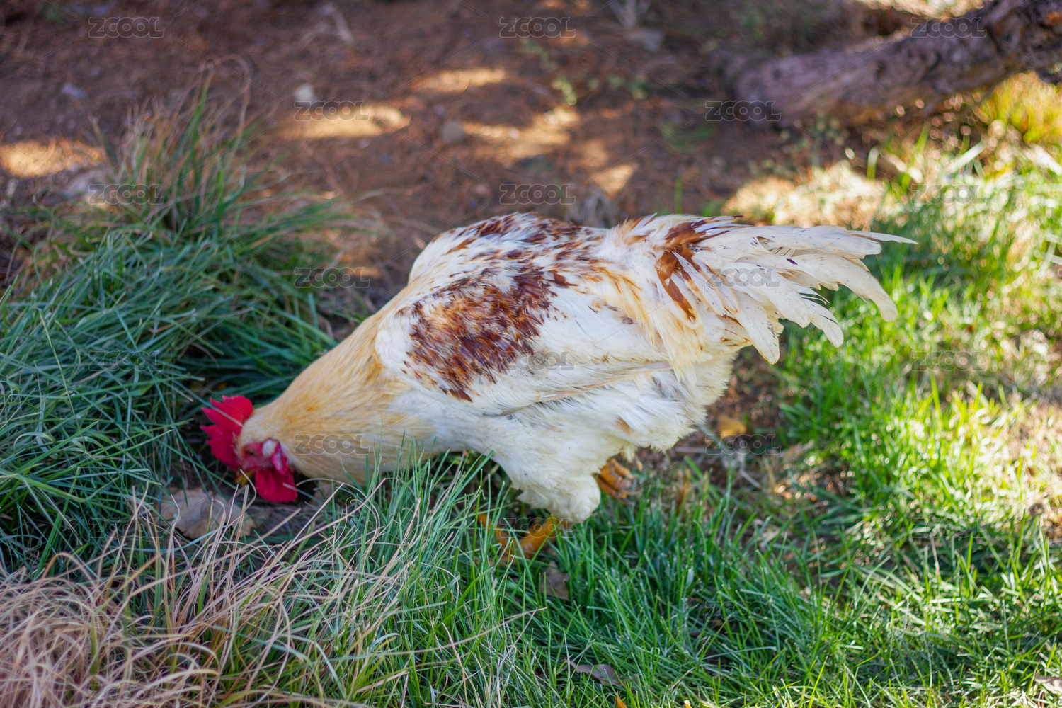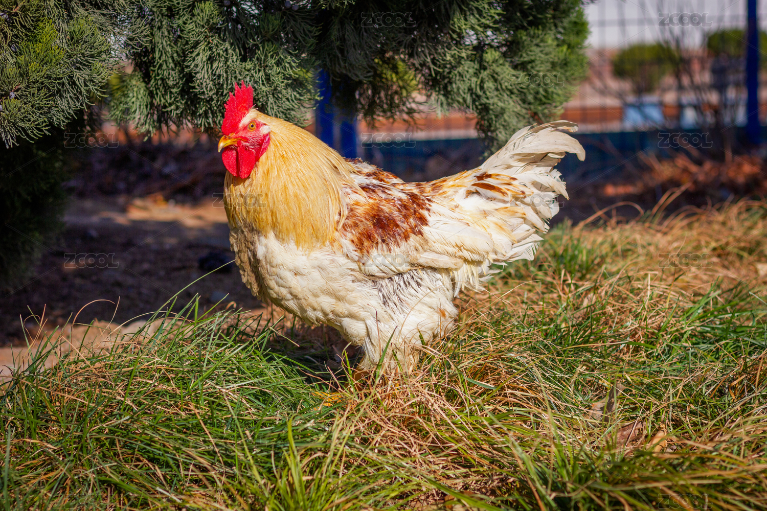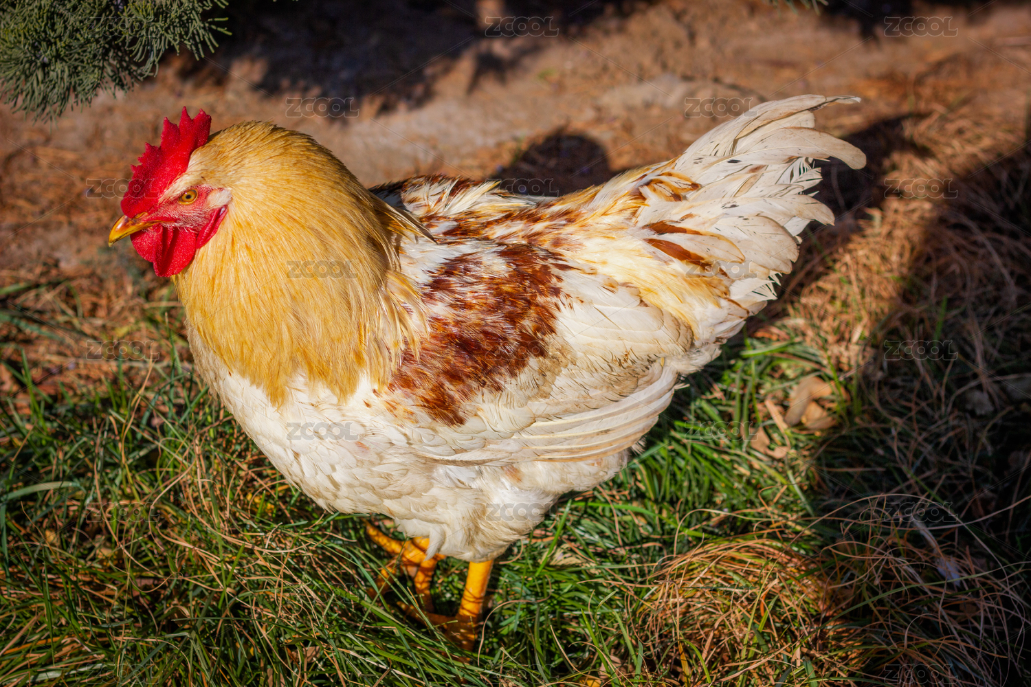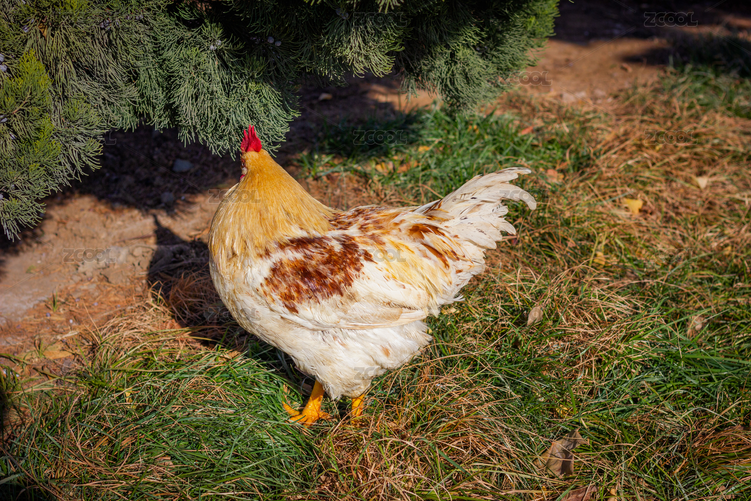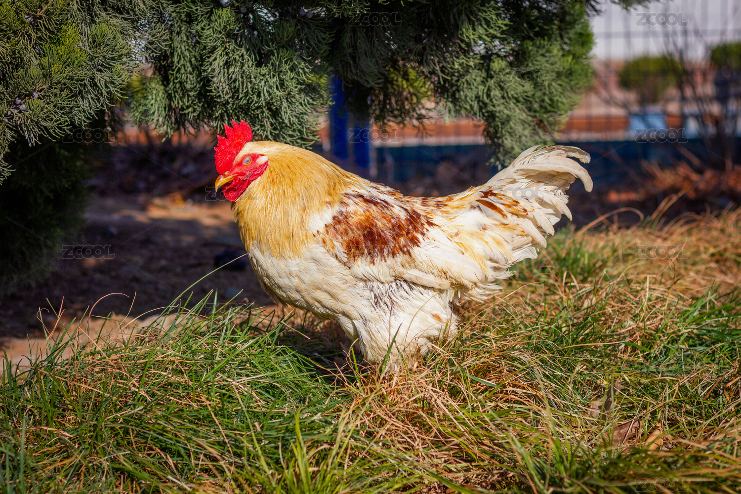 鸡,公鸡,家畜,黄色,羽毛,鸡冠,红色,草地,觅食,喙