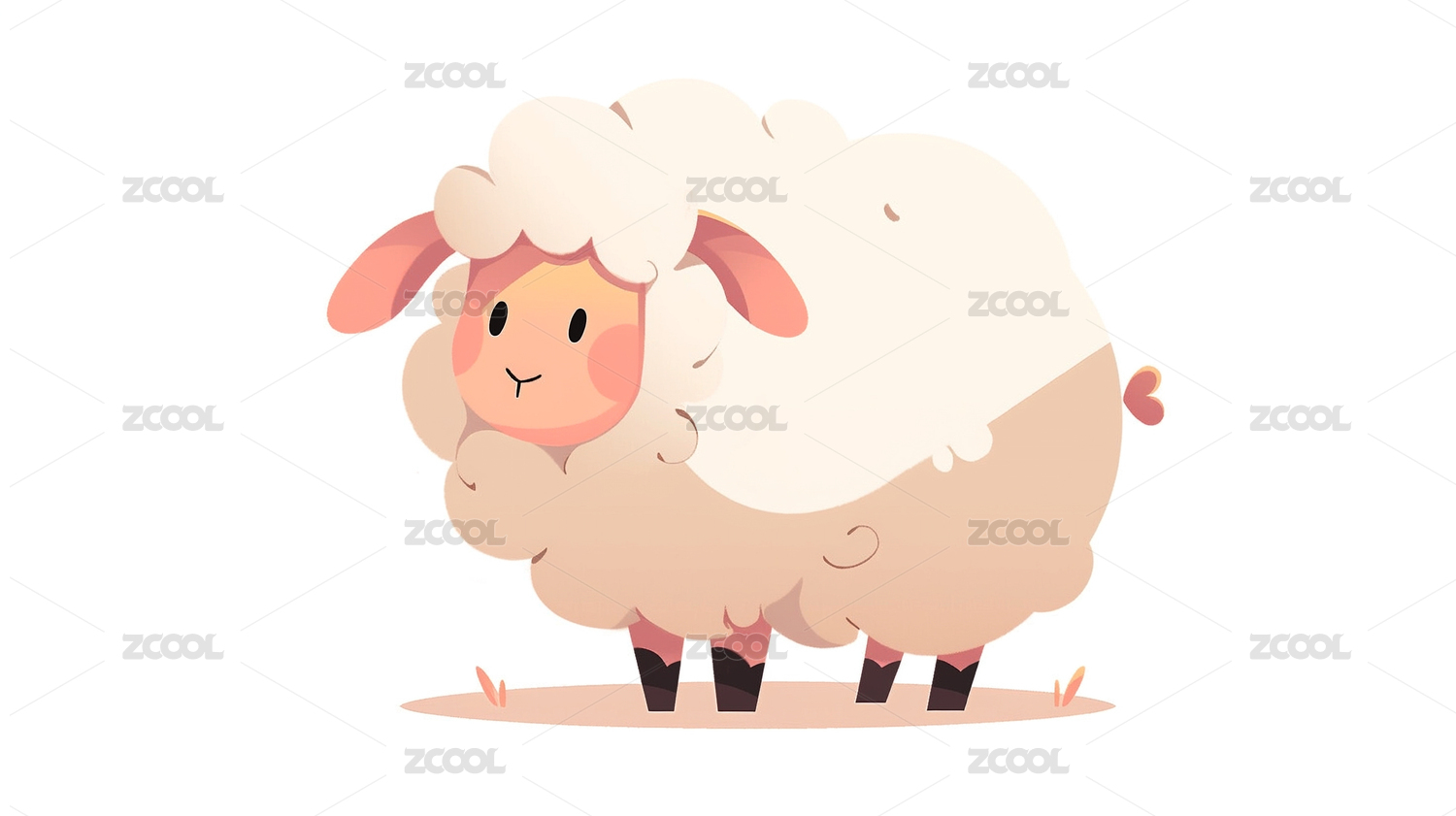蓝天白云下绿色草地上两只卡通绵羊插画