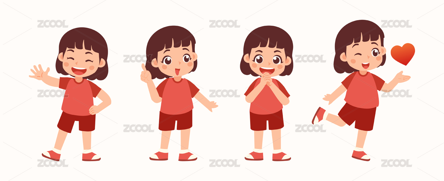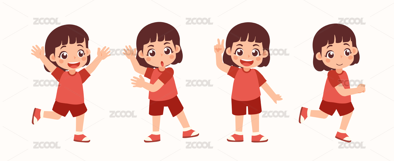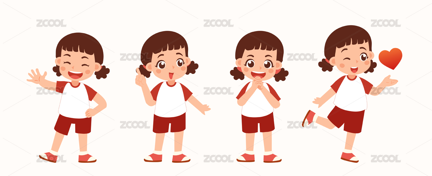 矢量,学生,孩子,女孩,上学,书包,动态,设定,小学生,举手