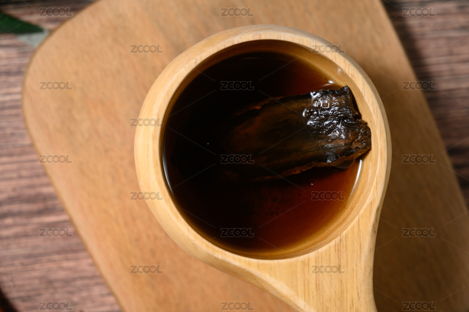 桌面上的杯子里的美味可口的桂花乌龙茶