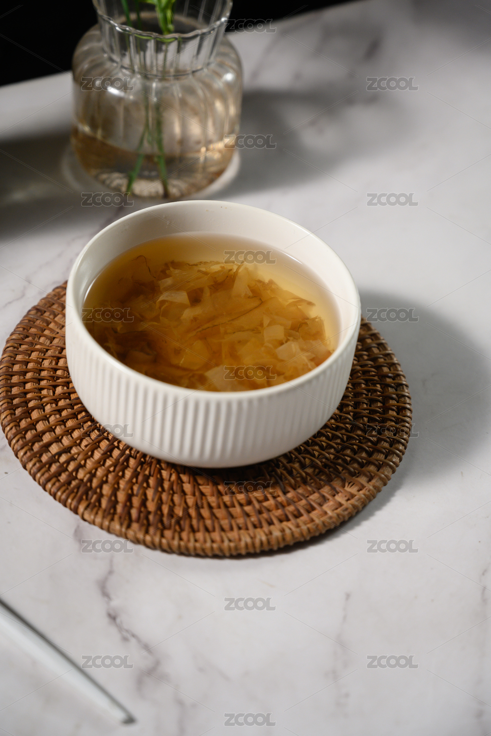桌面上的杯子子里的清爽可口的冬瓜茶