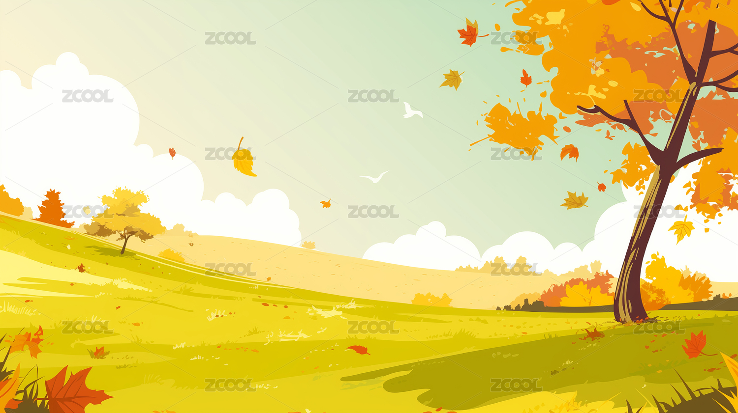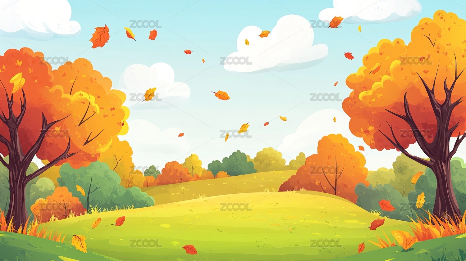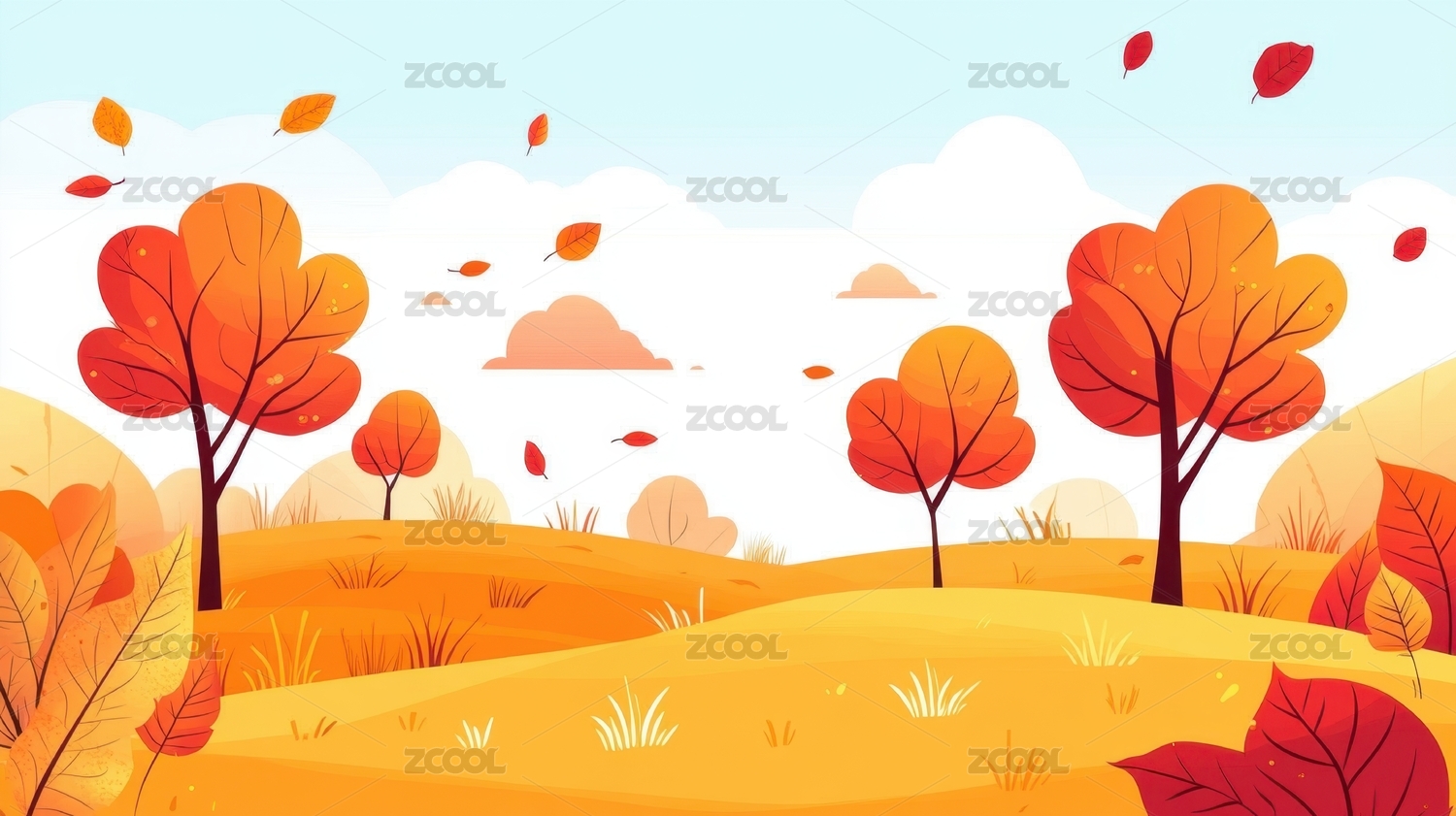 秋天秋季立秋秋分自然户外风景卡通漫画插画