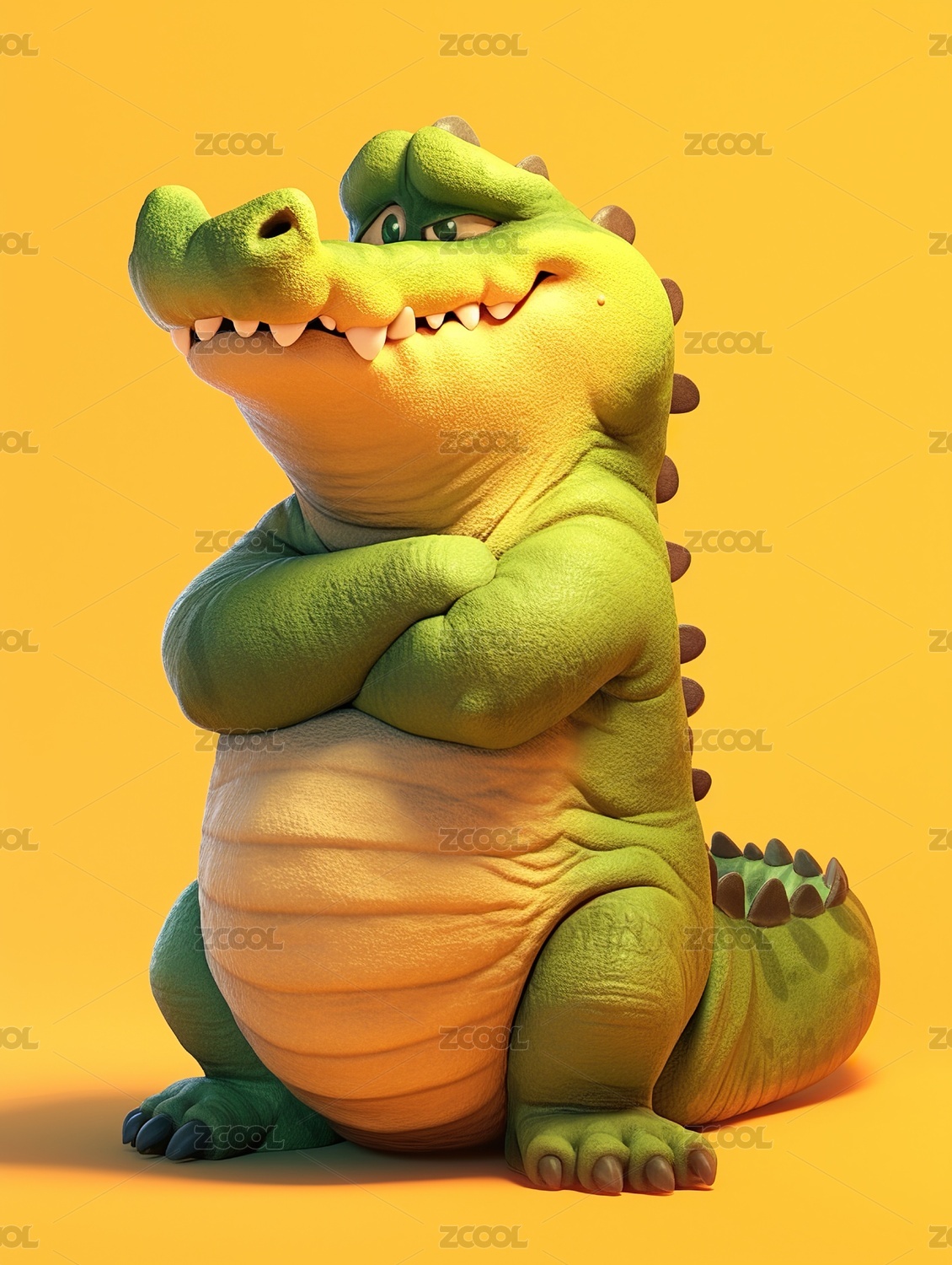 低面多边形糖果色鳄鱼玩具模型3D立体插画