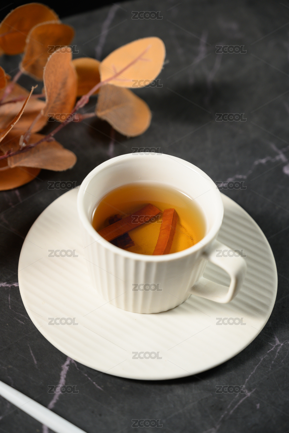 桌面上的杯子里的人参须茶