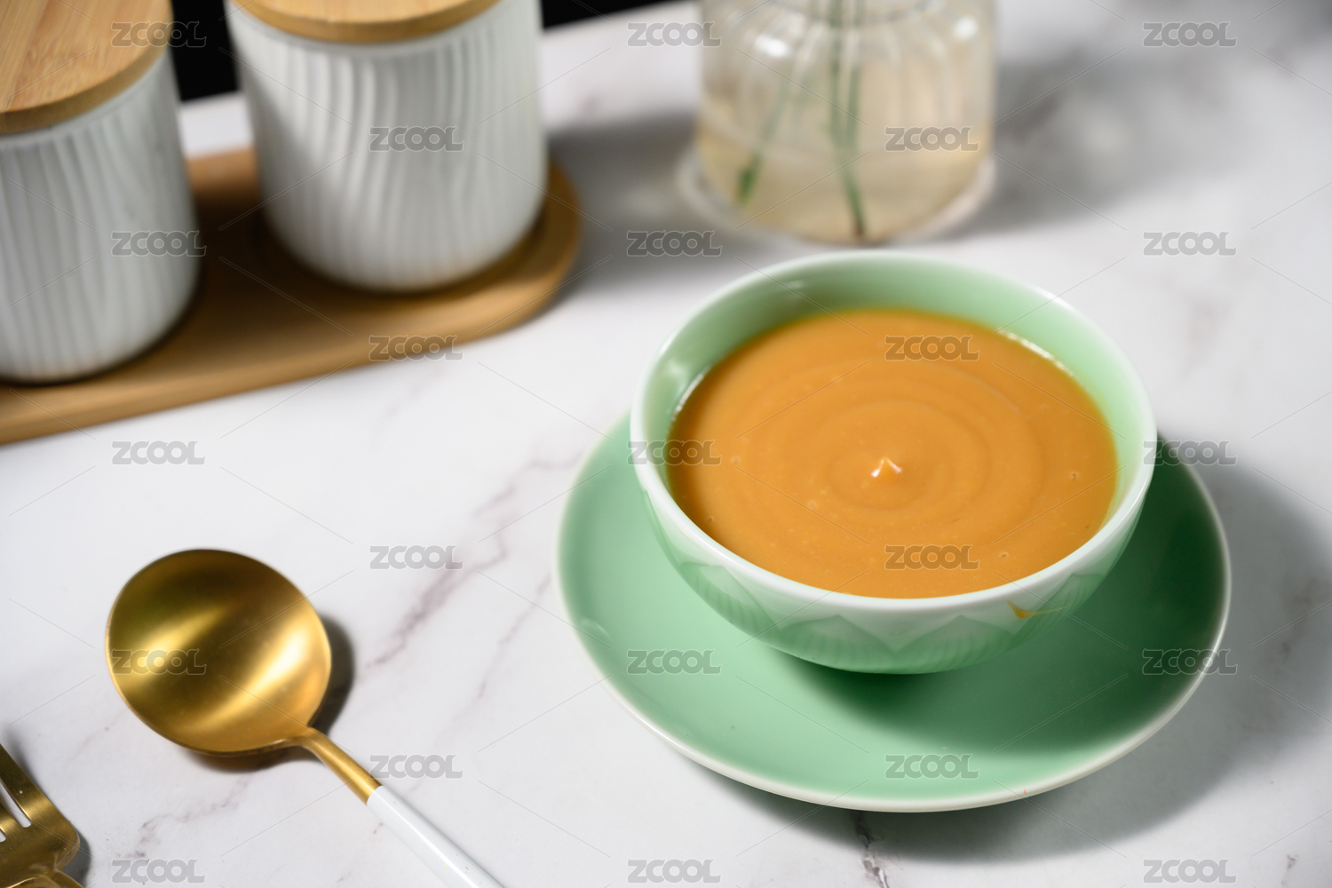 桌面上的碗里的美味可口的南瓜汤