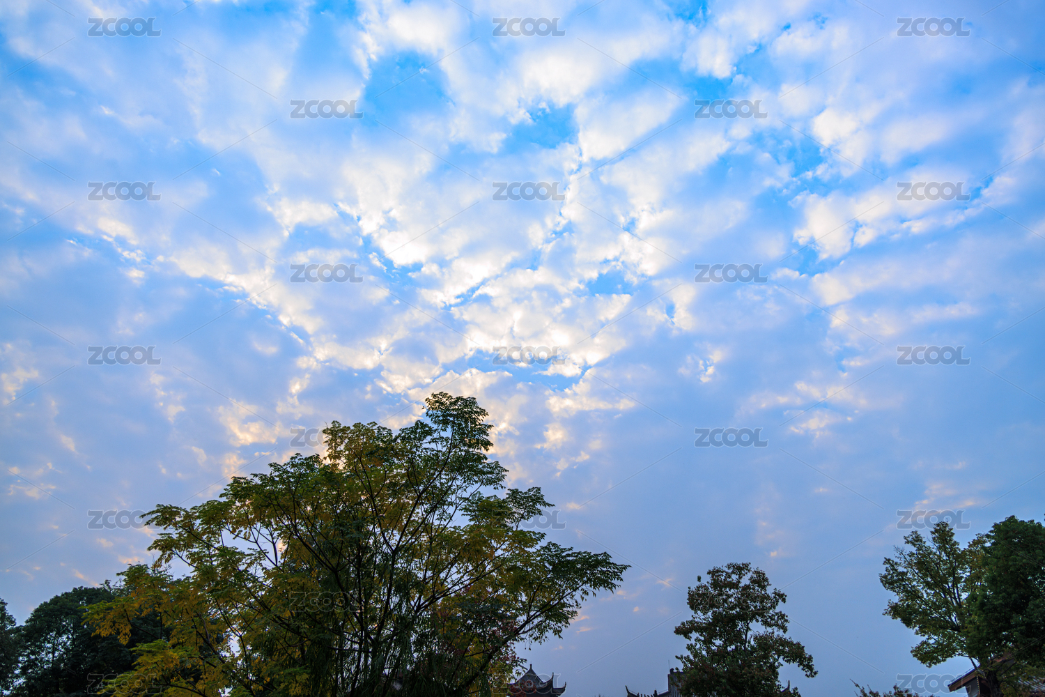 蓝天下树木的低角度视图