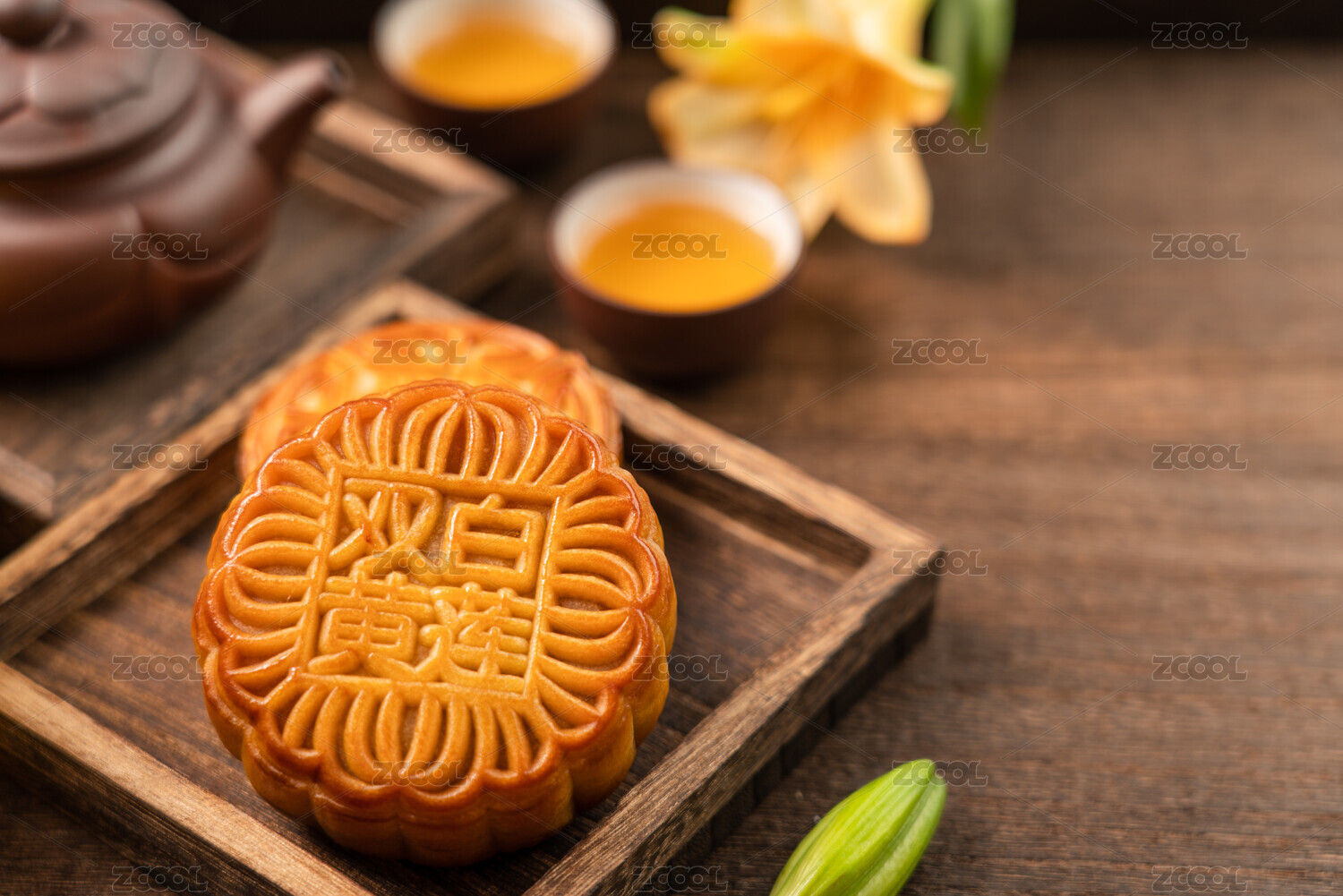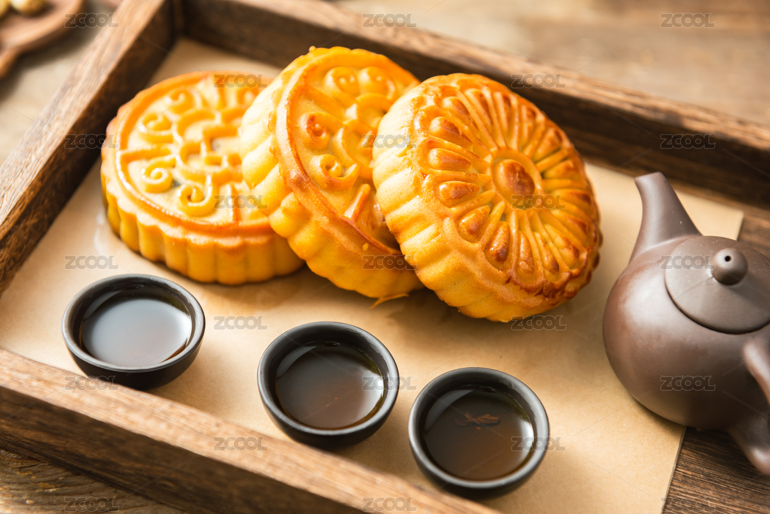 中国传统节日中秋节美食——月饼、茶