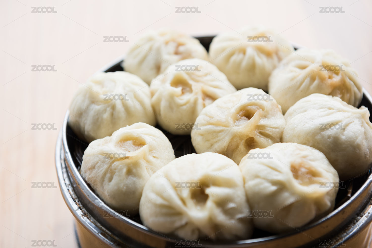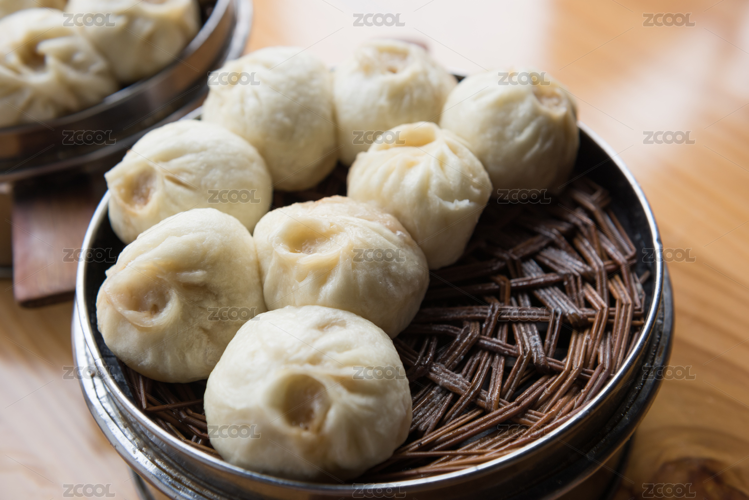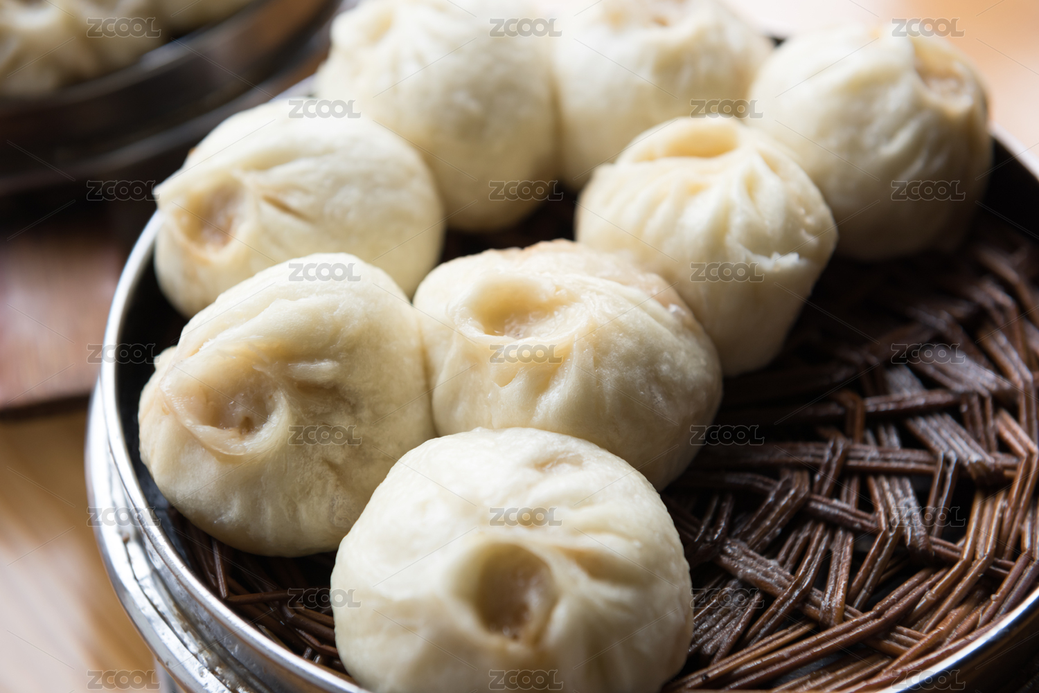 一屉刚蒸熟的包子特写