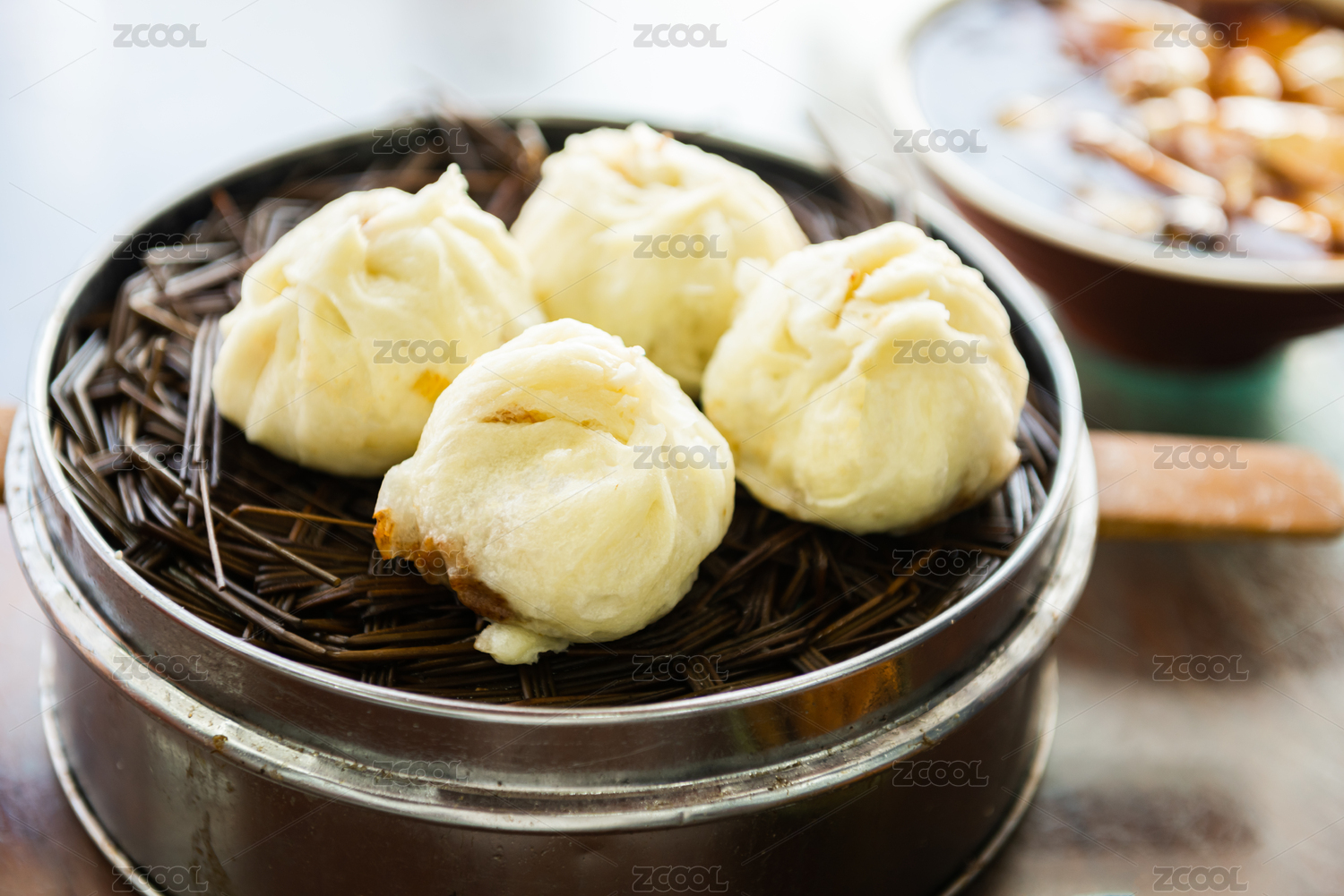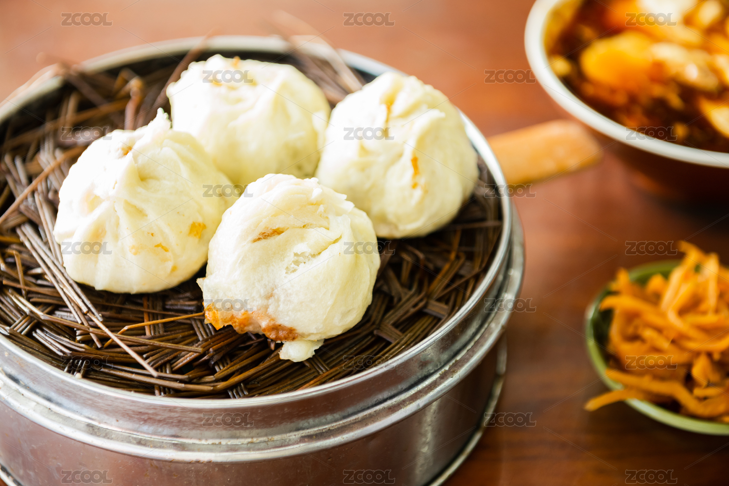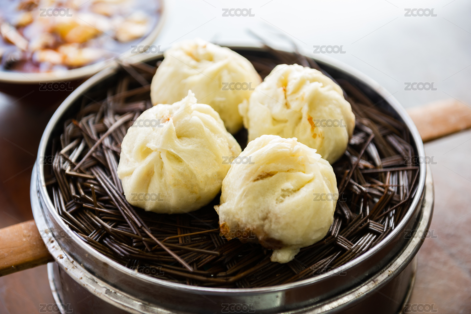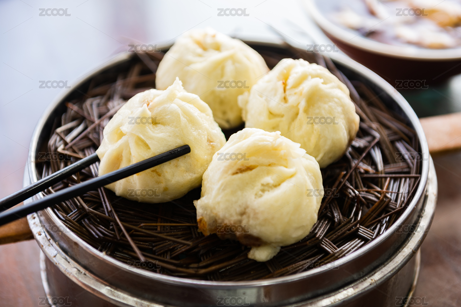 一屉刚蒸熟的包子特写