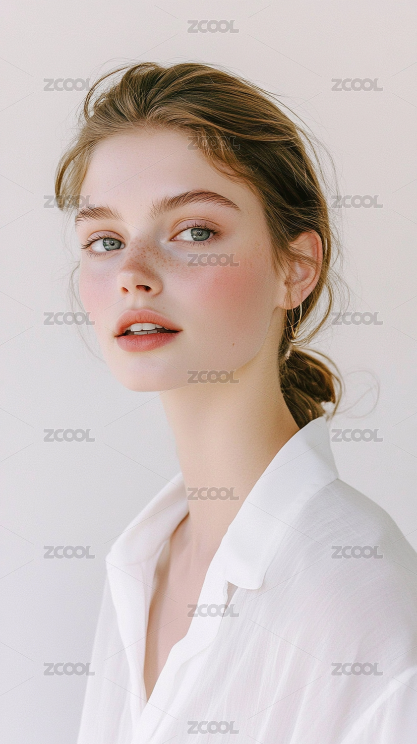 浅色背景欧美女性人物肖像