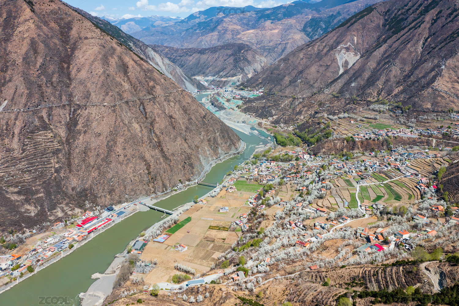 四川西部石棉县安顺场乡镇、大渡河和峡谷