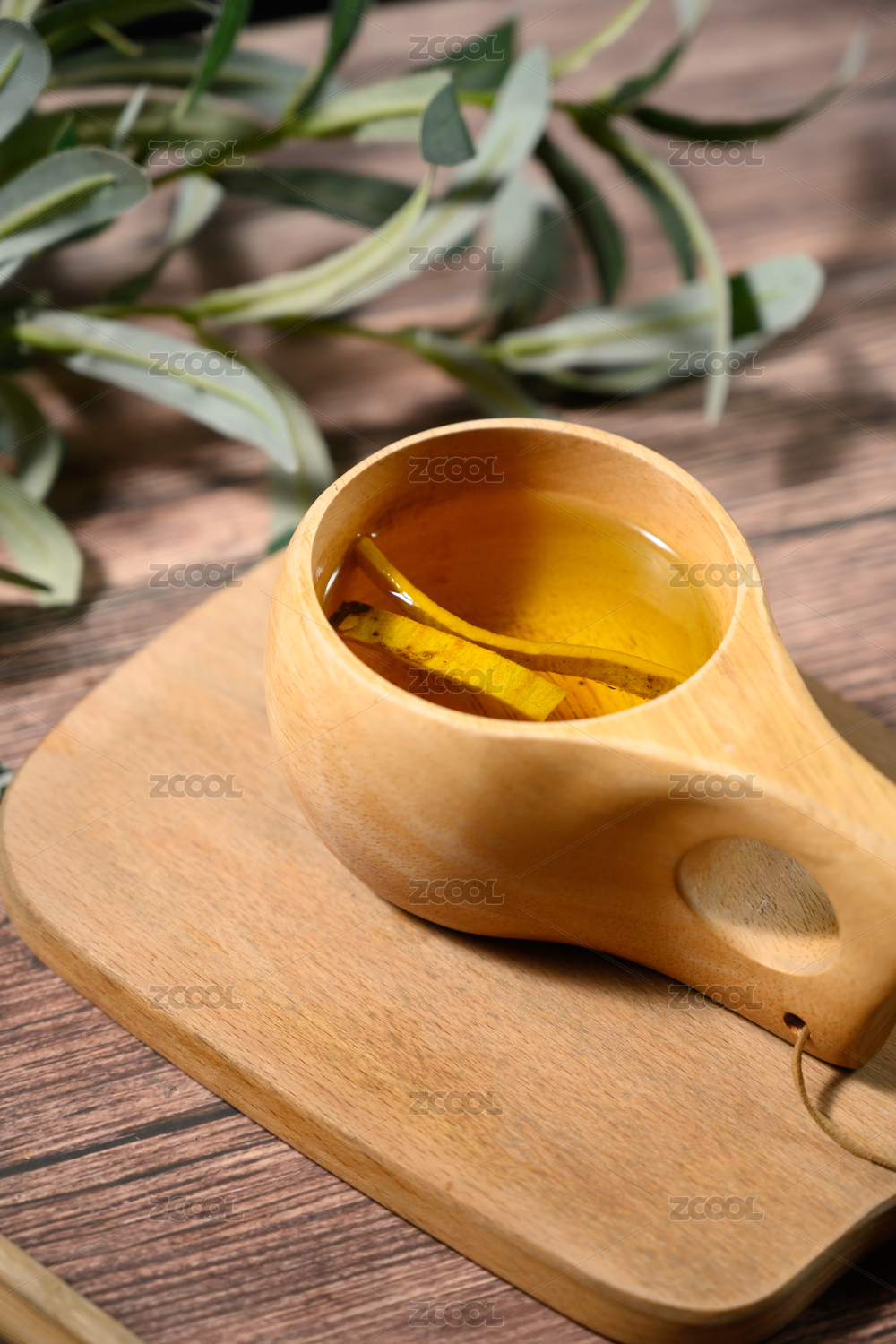 桌面上的盘子里的美味可口的咖啡果皮茶