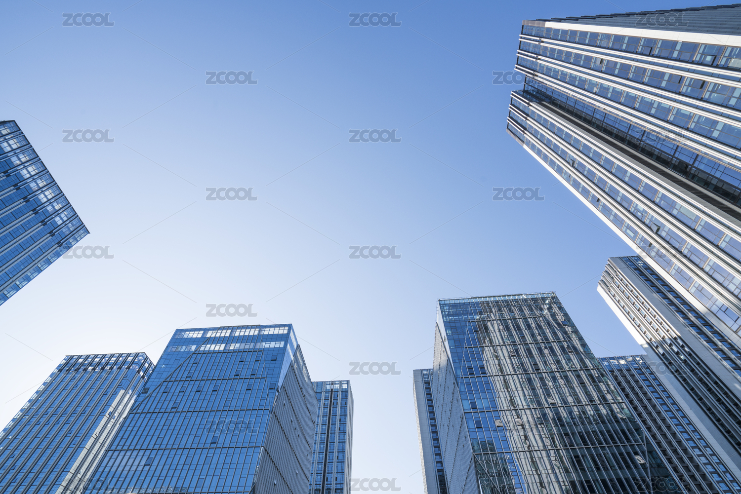 商务办公楼宇建筑低角度仰视视图