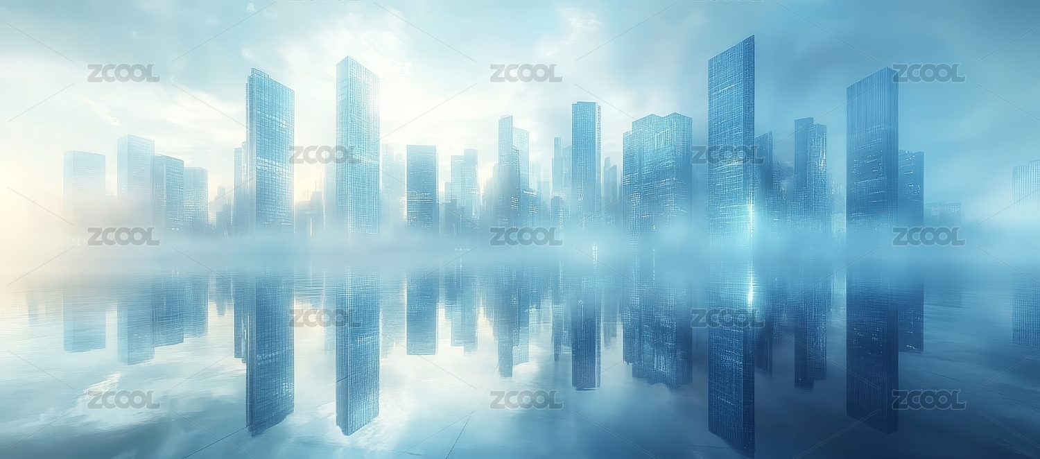 玻璃城市 蓝色 科技 AI 未来 摩天楼
