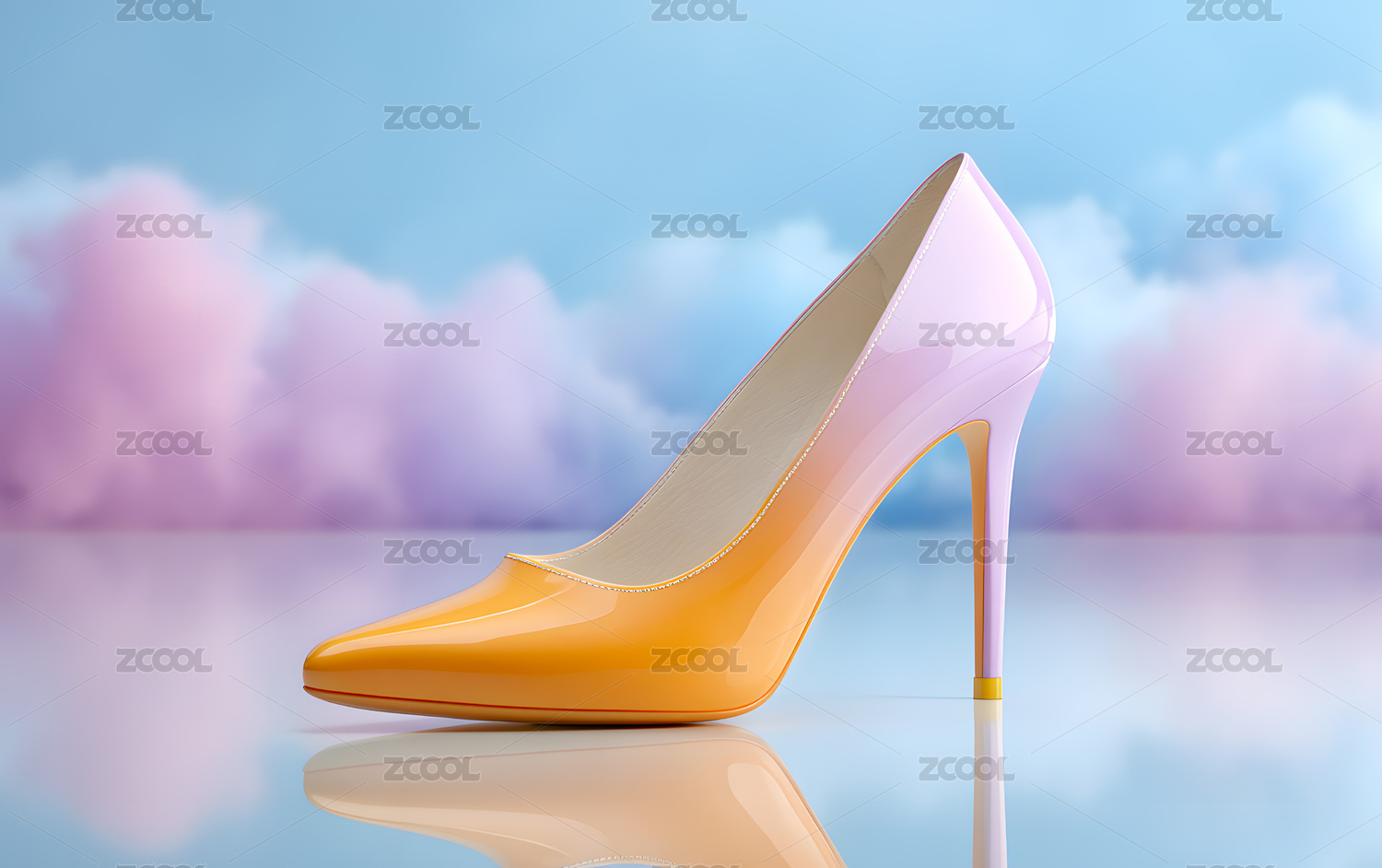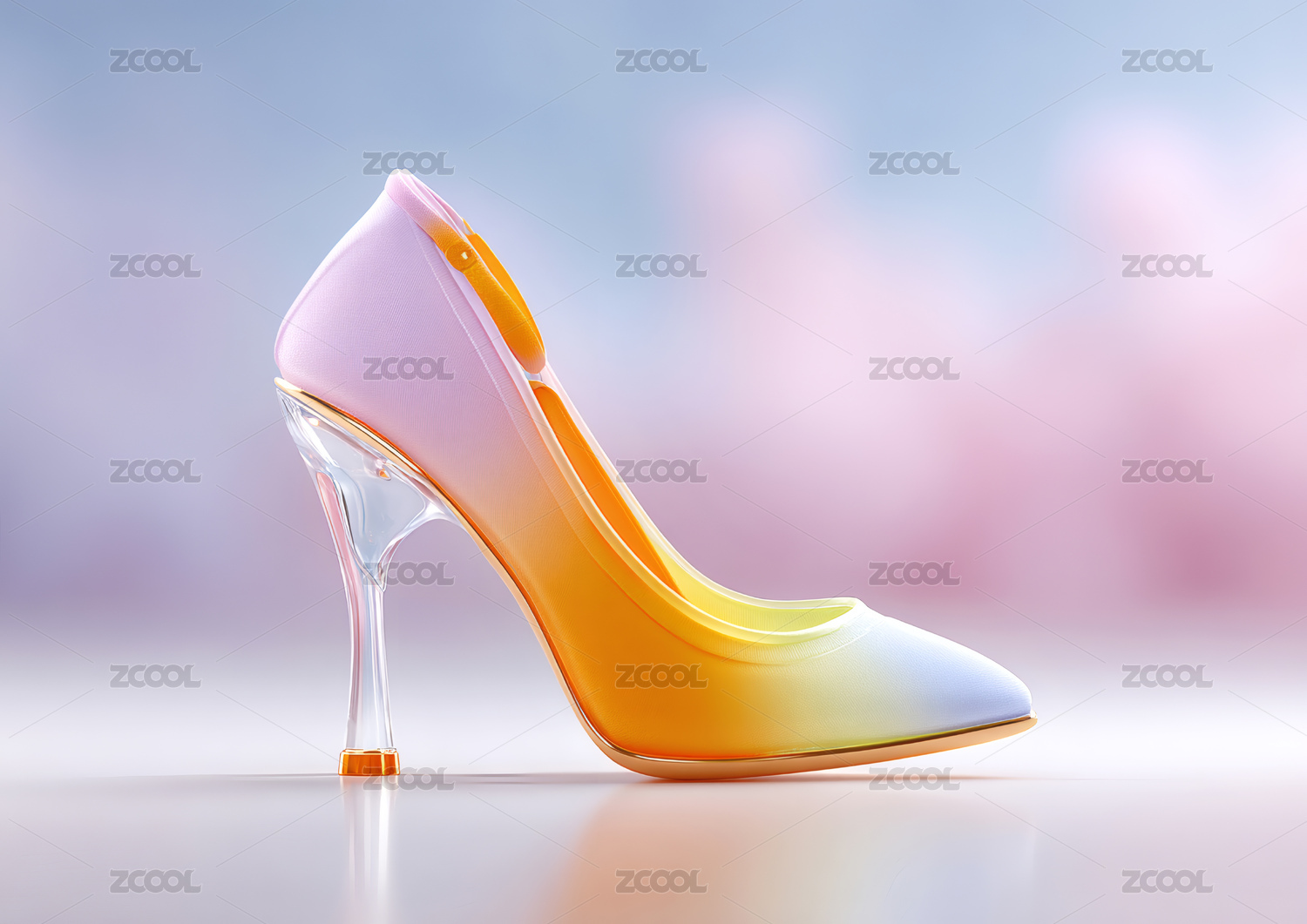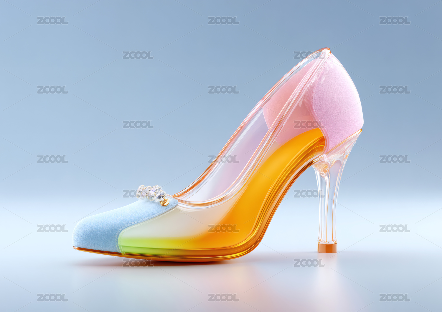 一个漂亮的艺术感玻璃高跟鞋3D场景素材