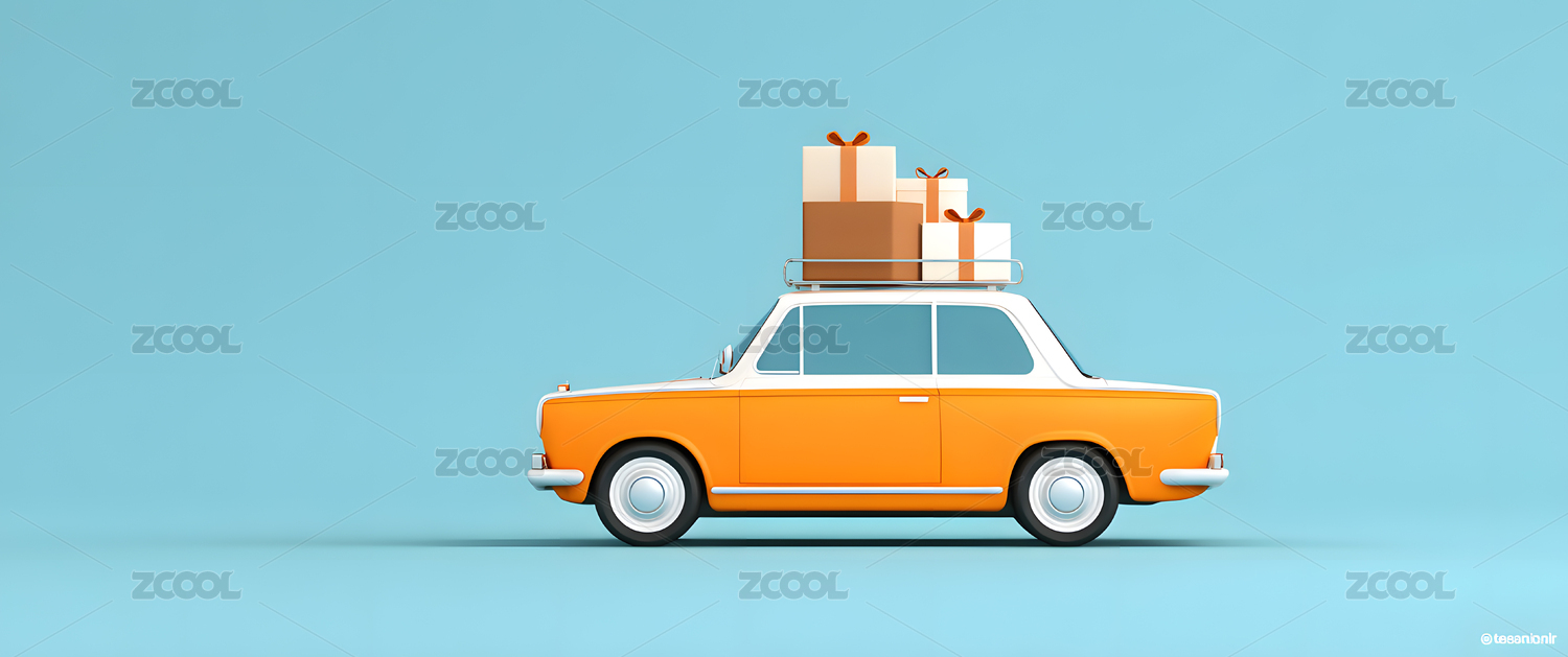 橙色小汽车载着礼物盒