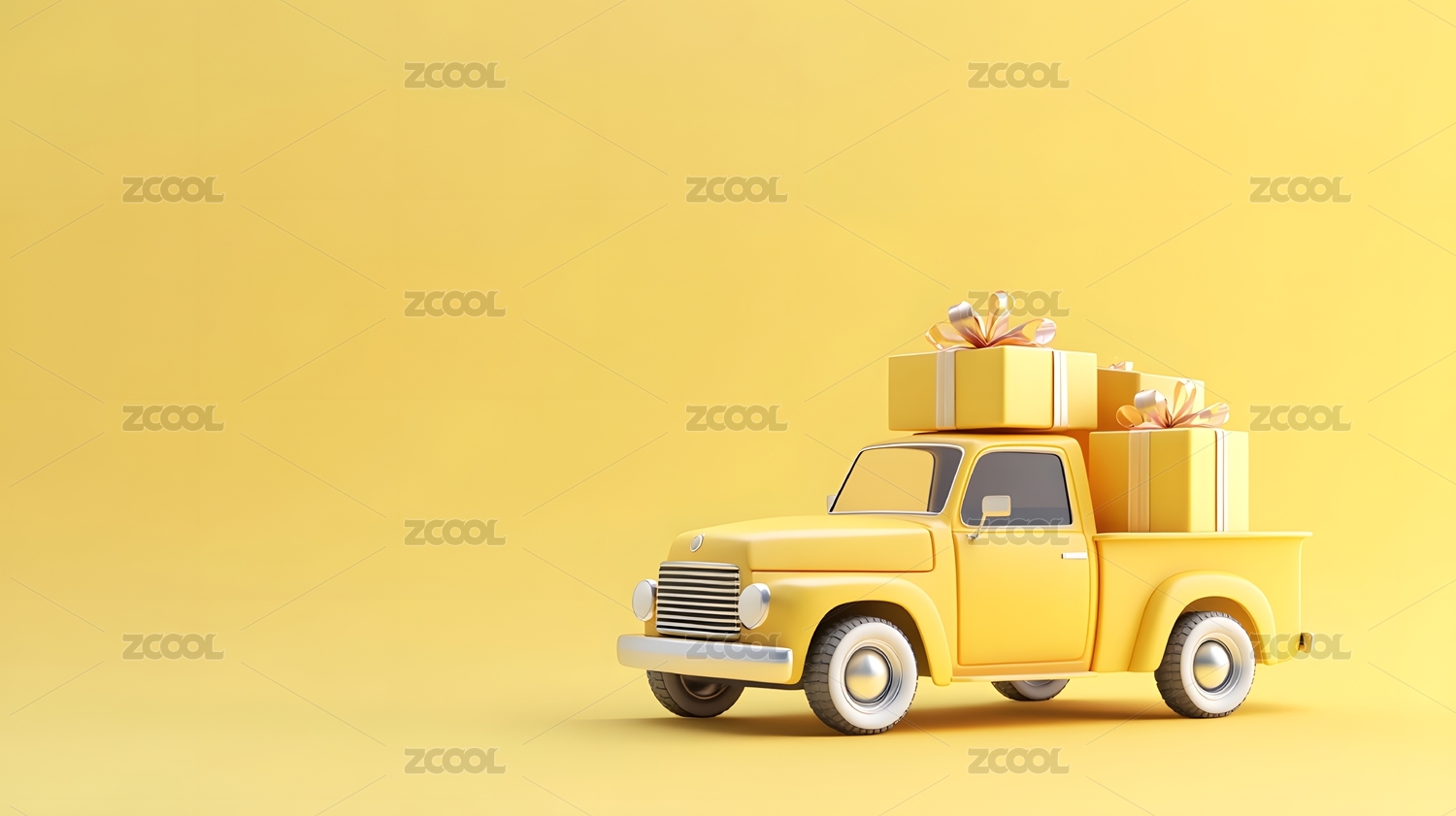 黄色汽车载着礼物盒