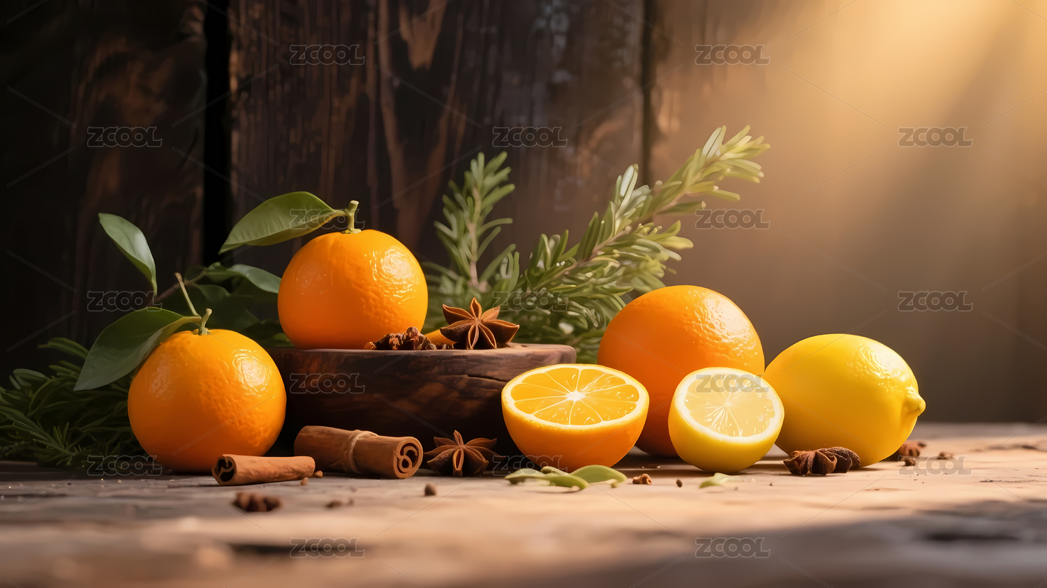 温馨自然的橙子与柠檬