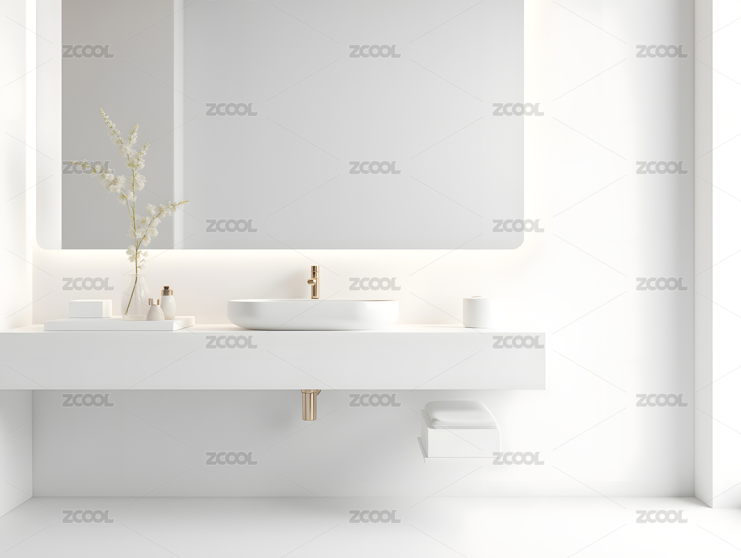 家居题材的卫生间或盥洗室和背景墙,3D渲染