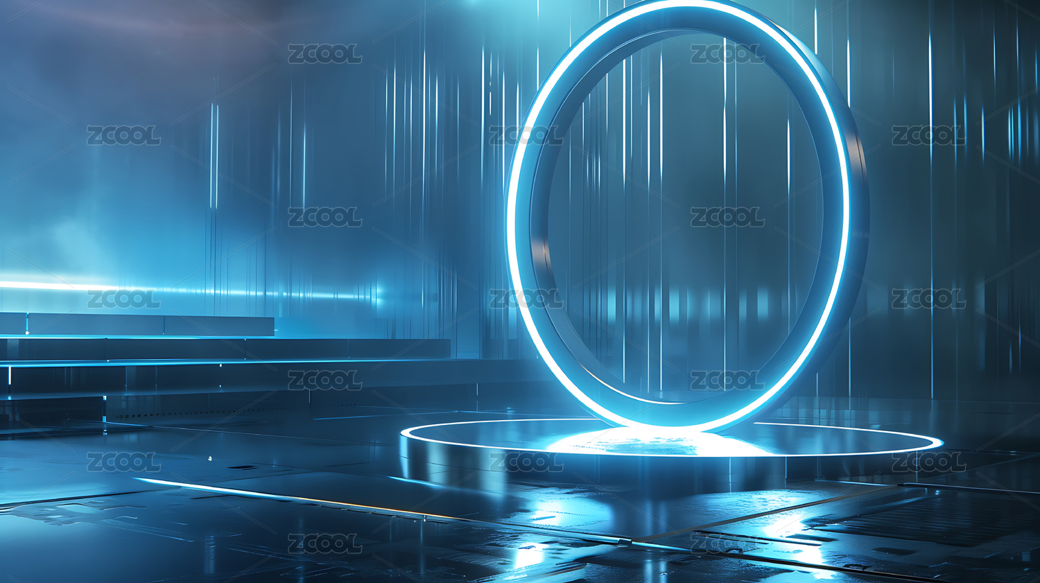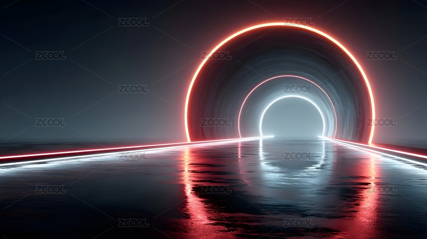 未来, 科技, 虚拟现实, 门, 圆形, 设计, 发光, 隧道, 光线, 空间