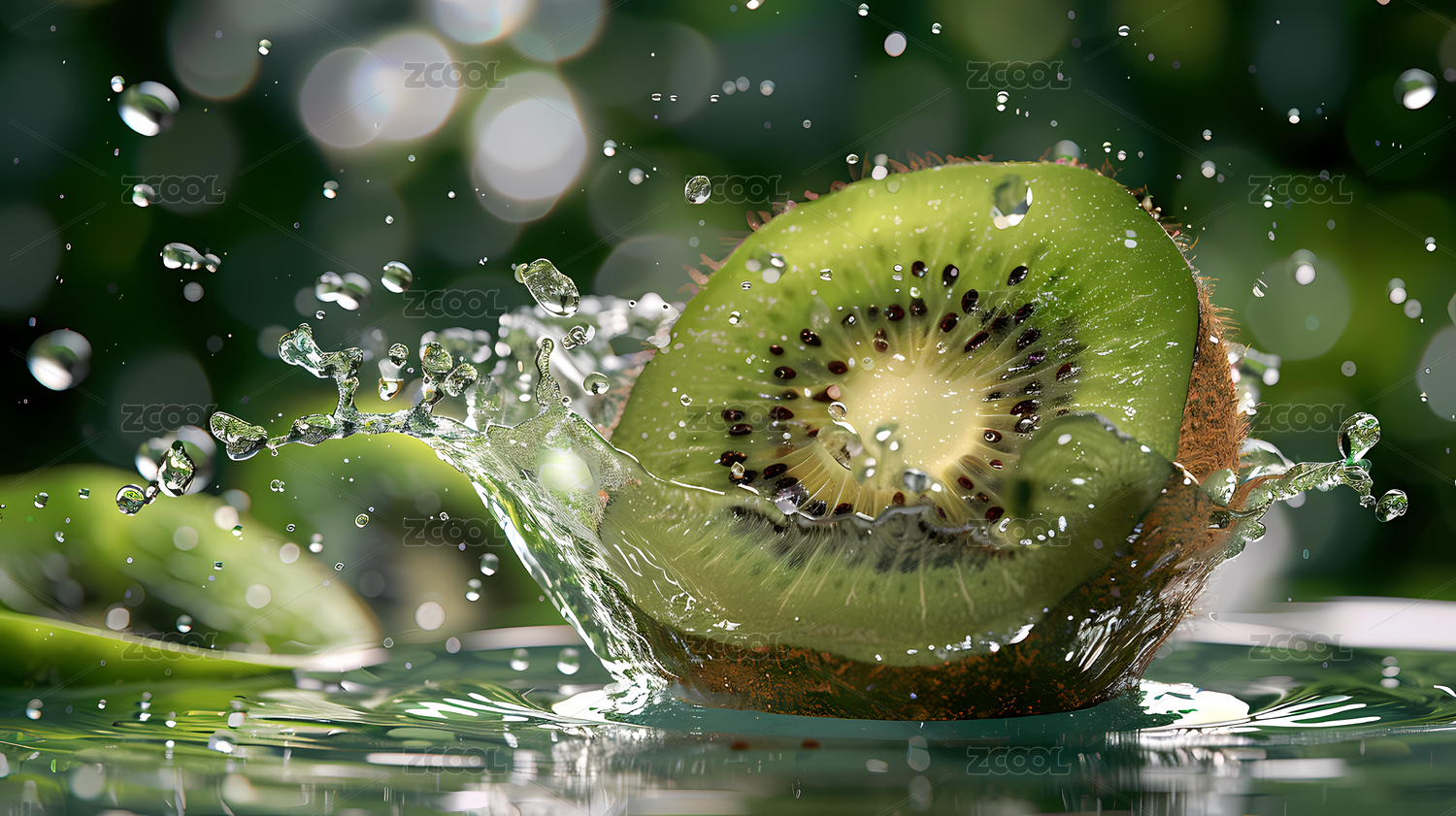 猕猴桃入水溅水花场景