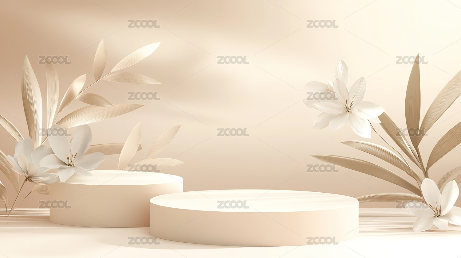 植物,叶子,展示台,自然,装饰,简约,现代,设计,背景,白色