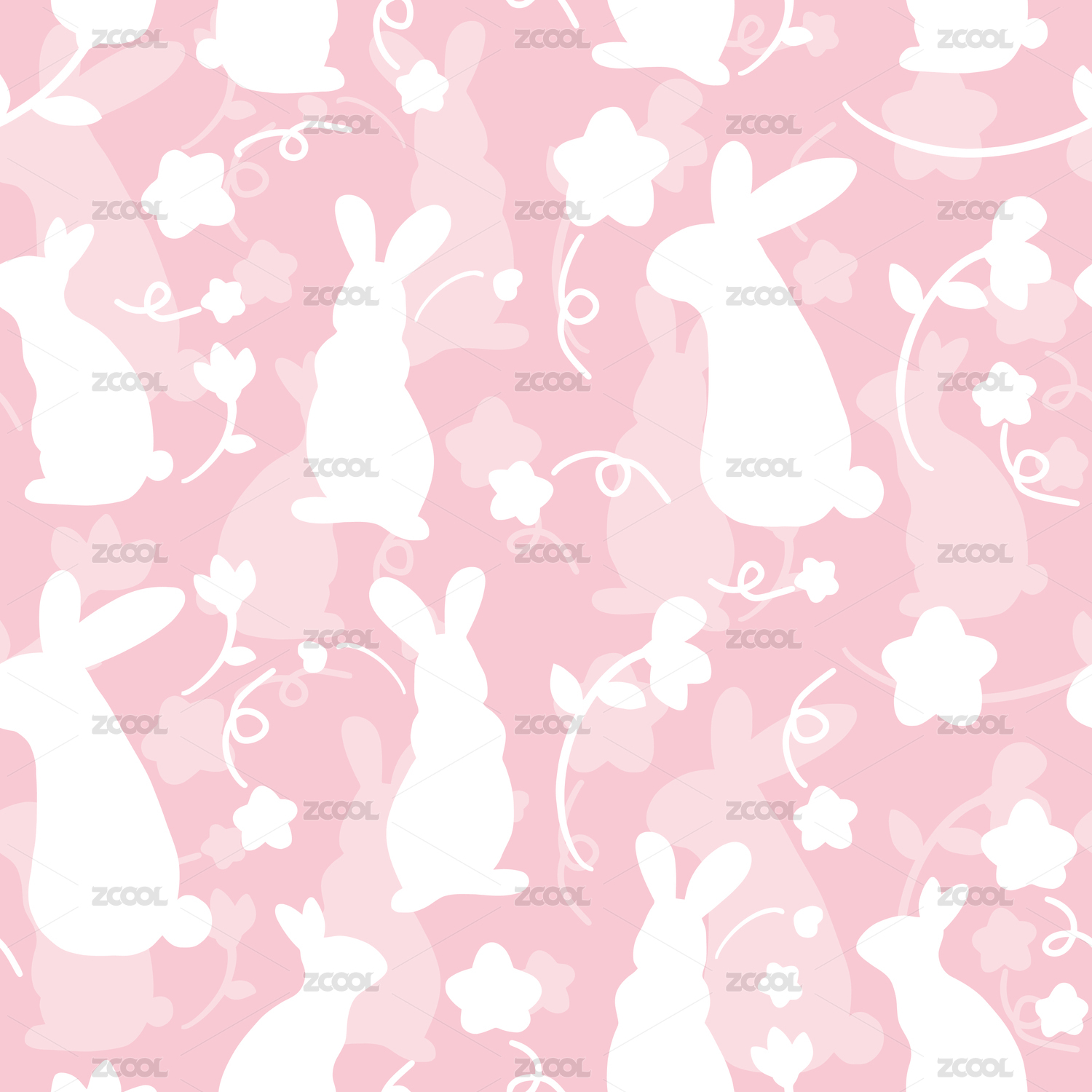粉色底可爱爱心小兔子矢量插画无缝壁纸背景
