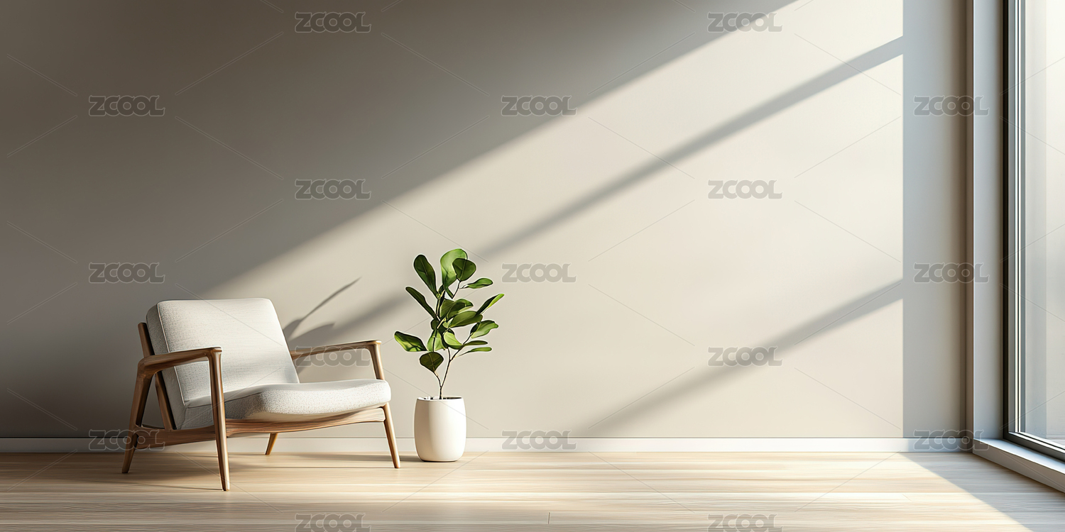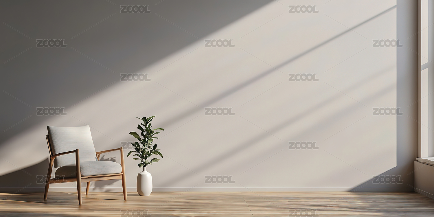 干净的室内白墙和绿植装饰简约空白渲染背景