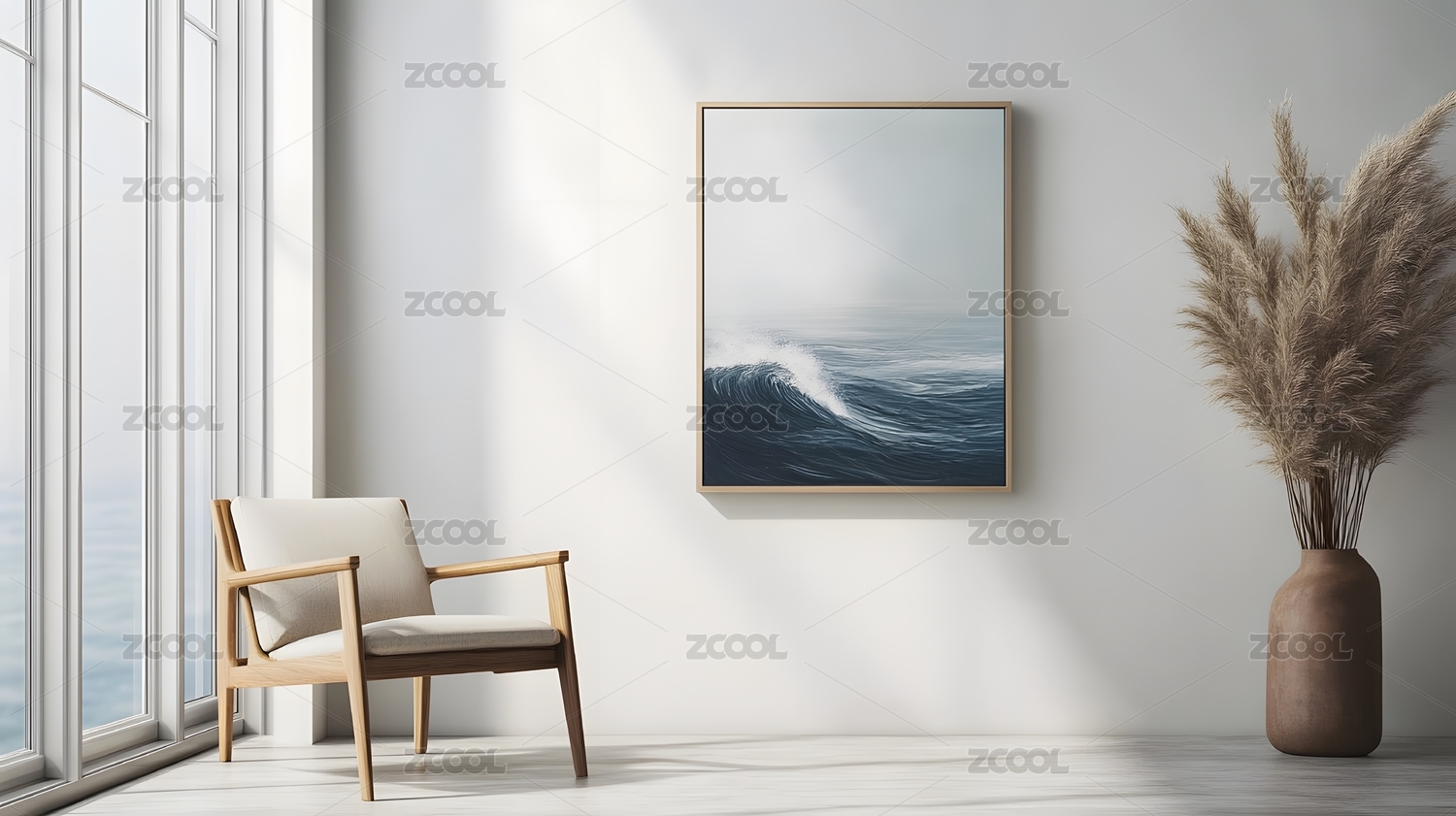 极简主义蓝色海浪画作