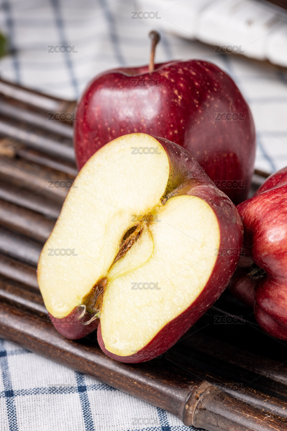 木底垫子上放着天水花牛苹果和花牛苹果切面