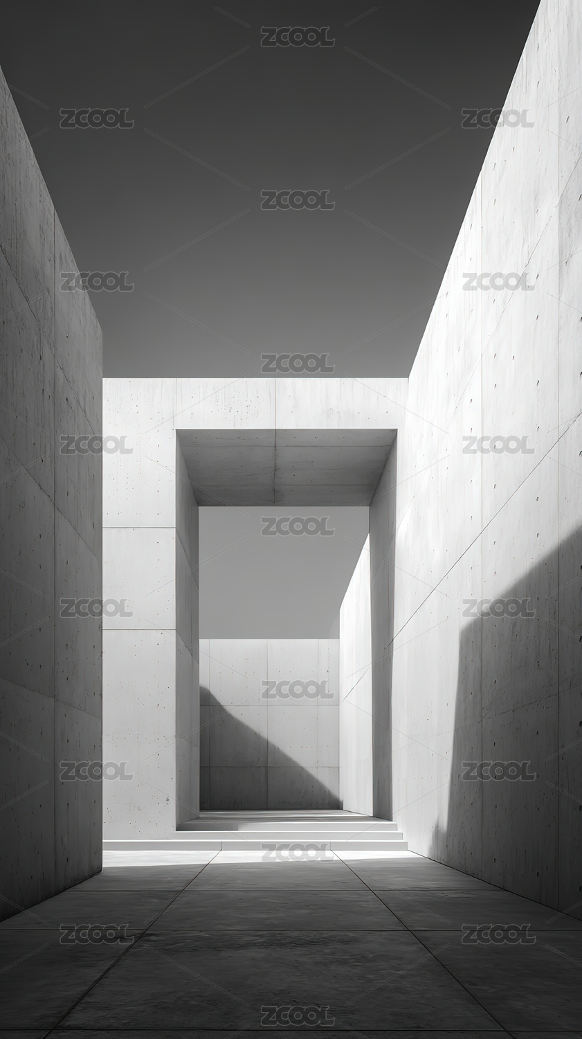 现代极简混凝土建筑室内空间