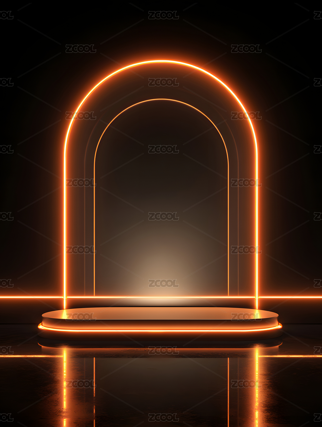 发光拱门和台阶黑色背景的未来主义场景