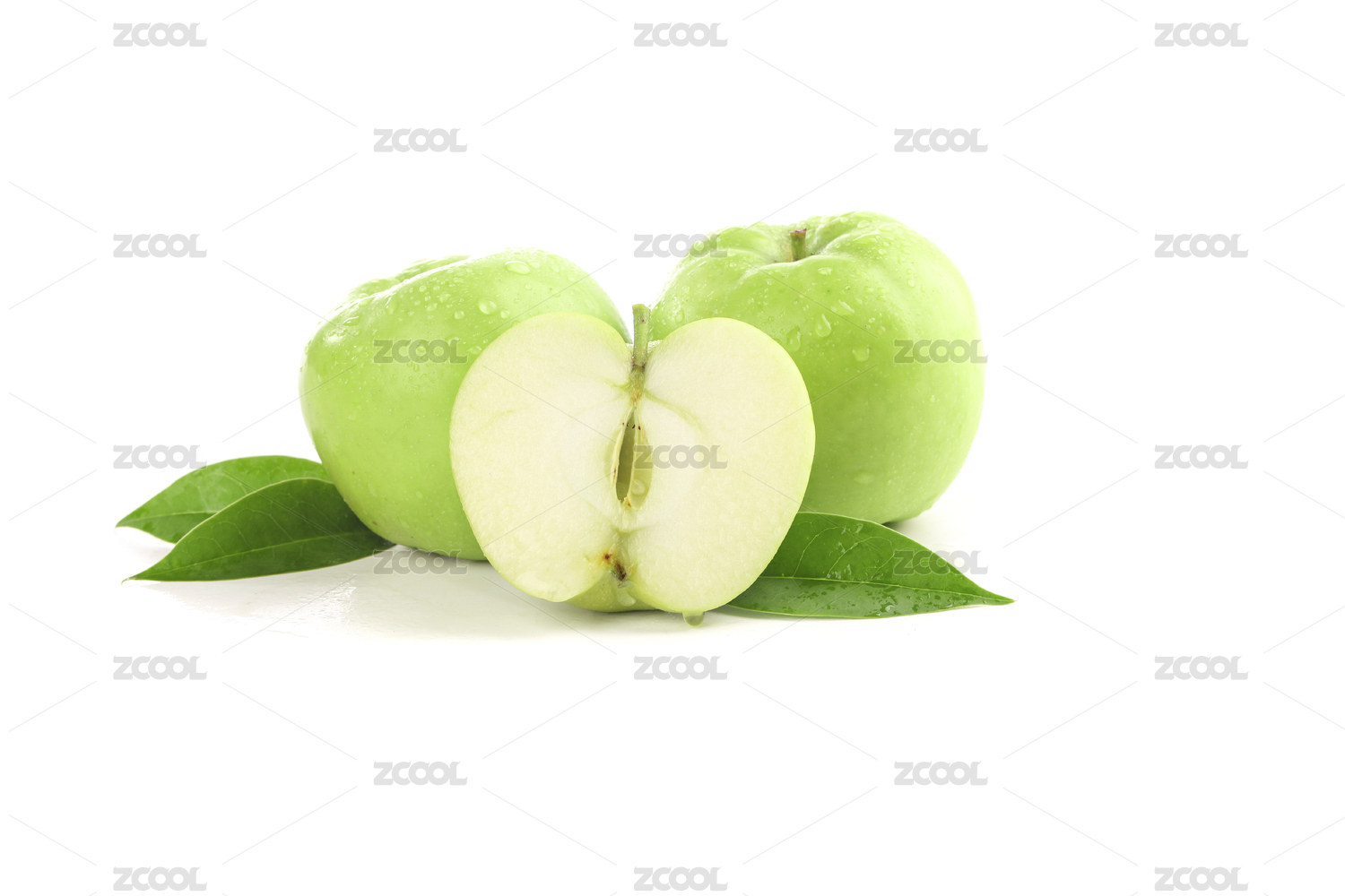 白底上的青苹果