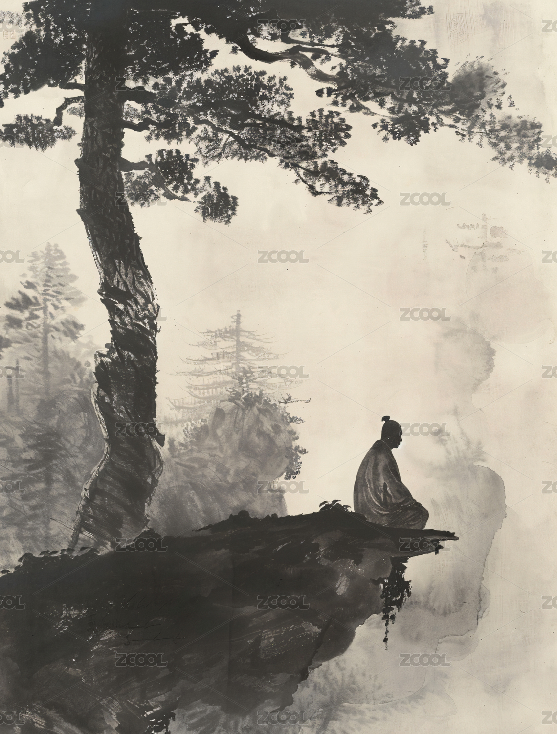 山间松下,静坐冥思