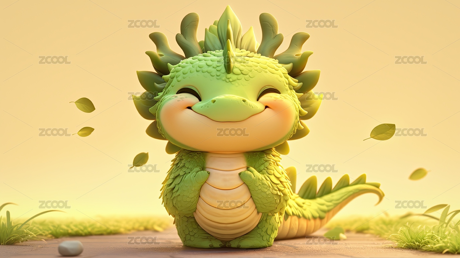 多巴胺,绿色,恐龙,幼崽,宝宝,动物,可爱,呆萌,3D,立体