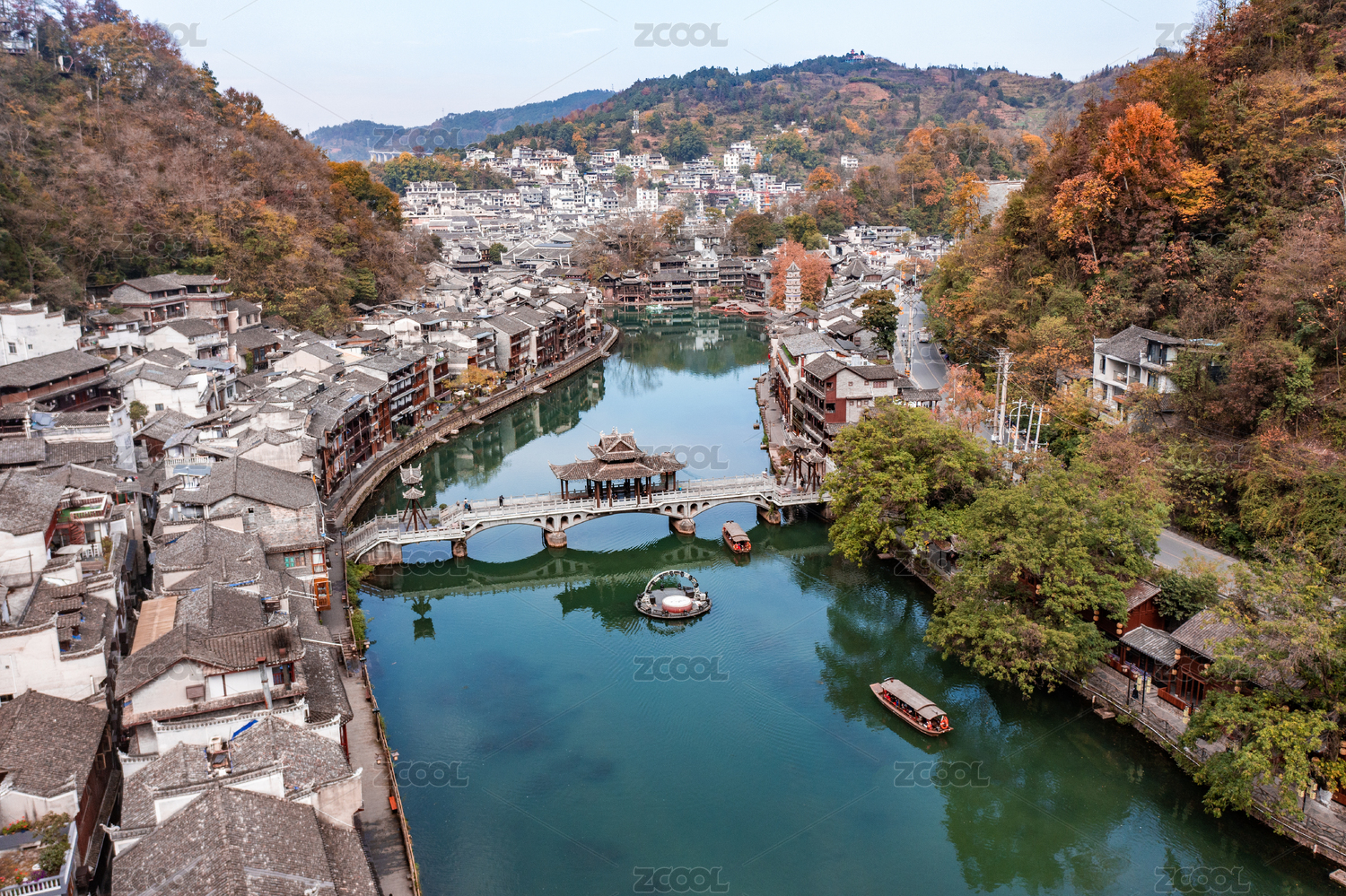 中国湖南省湘西州凤凰县凤凰古城航拍